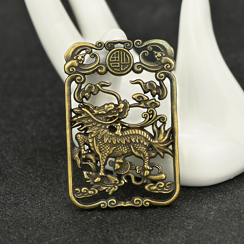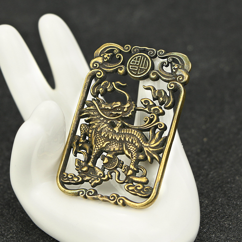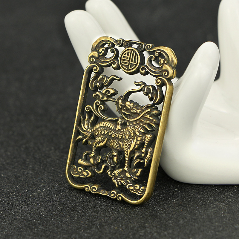 纯铜传统瑞兽富贵麒麟镂空铜腰牌子黄铜挂件吊牌腰牌挂牌