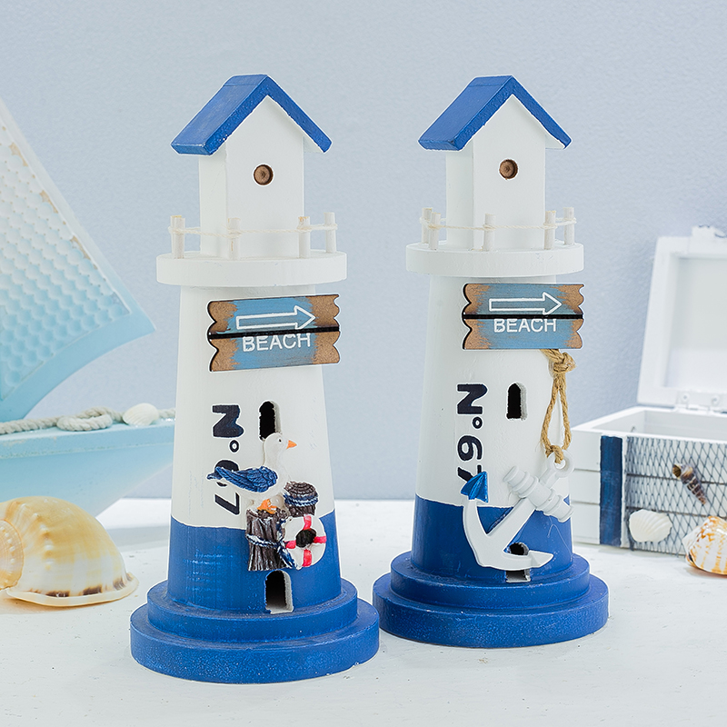 速发创意装居木质复古灯塔模型礼饰摆件儿童房书架展示毕业家物