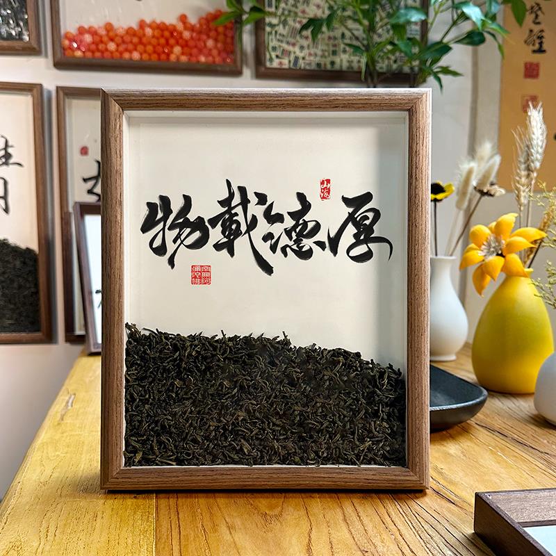 中式茶文化办公室桌面摆件茶室茶桌茶台书法相框中古茶道装饰摆台
