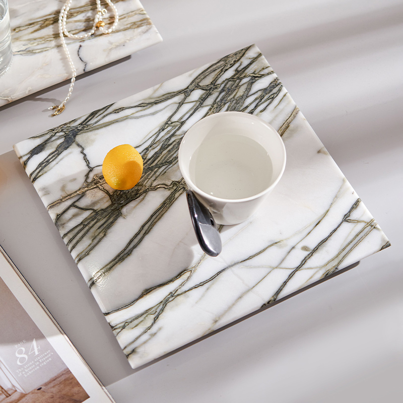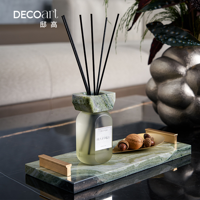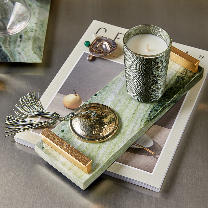 现代简约家具展厅茶几餐桌绿色高级感大理石材长方形托盘岛台摆件