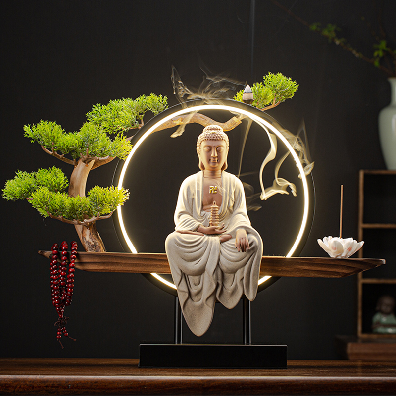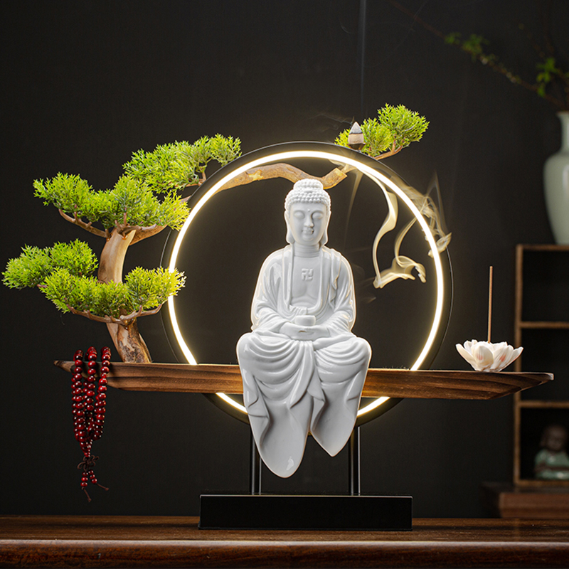 速发三宝佛药师佛阿弥陀佛释迦摩尼佛祖居家陶瓷佛像供奉家用灯圈