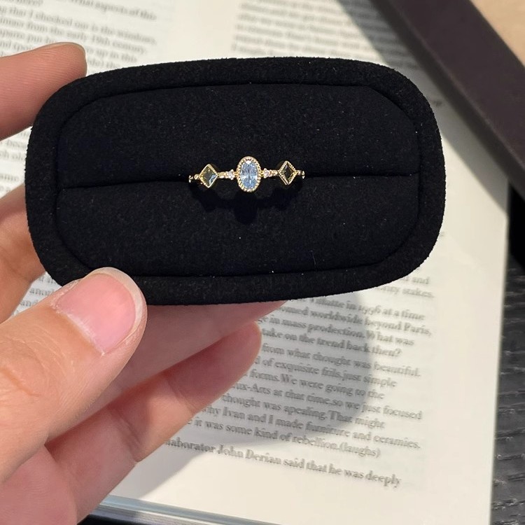仿海蓝宝绿橄榄方钻戒指女轻奢高级感精致百搭食指戒小众设计指环