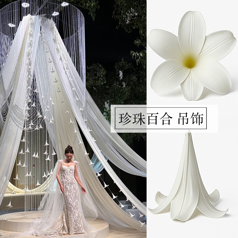 婚礼派对布置珍珠百合花串吊饰生日拍照道具宴会厅仿真花装饰挂件