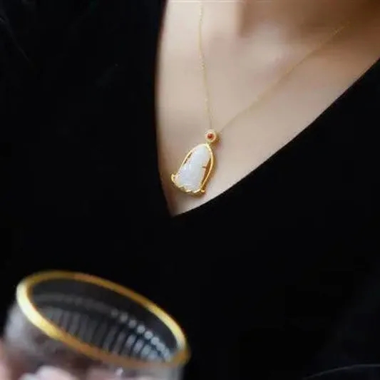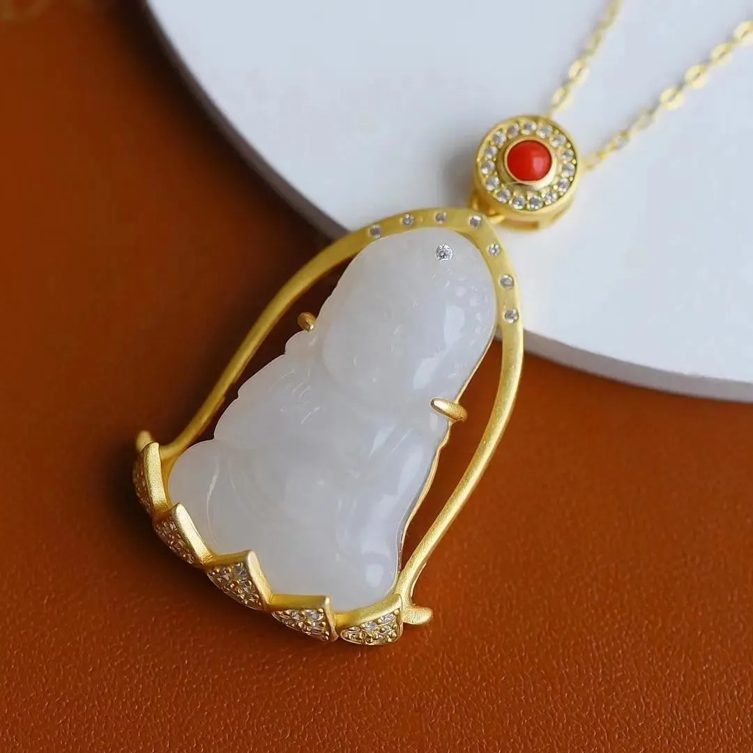 仿和田玉羊脂玉宝宝佛超可爱古典平安玉镀S925银古法金镶嵌饰品