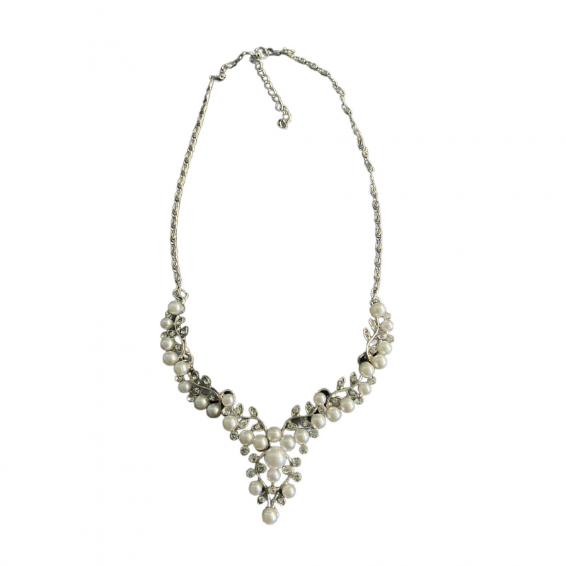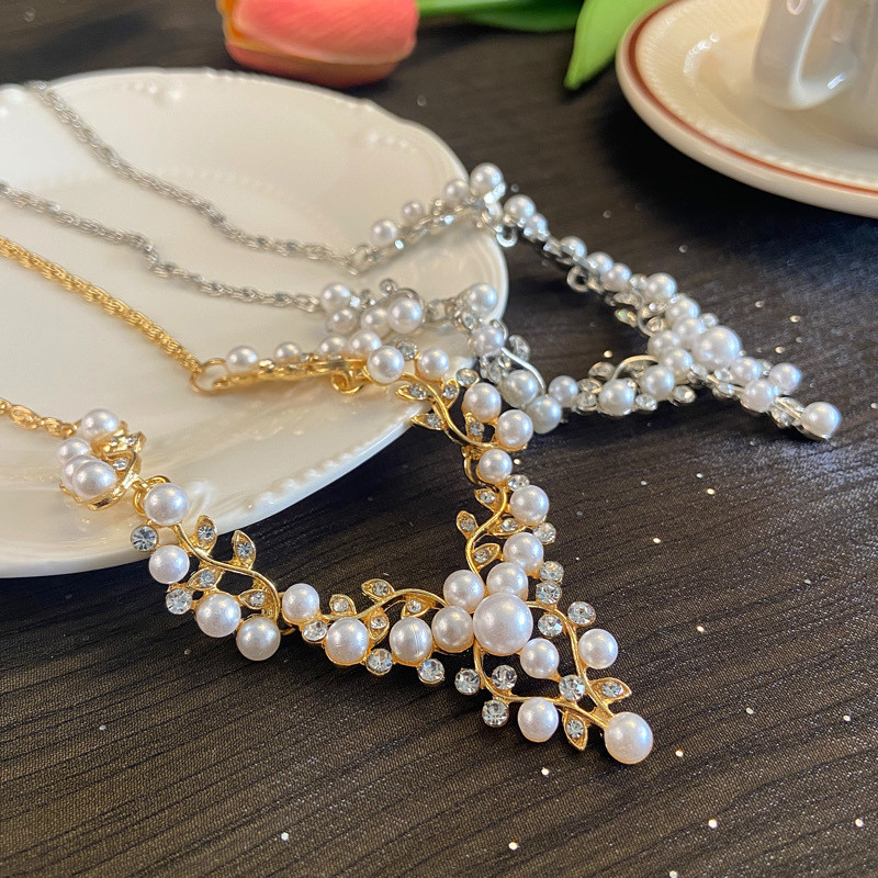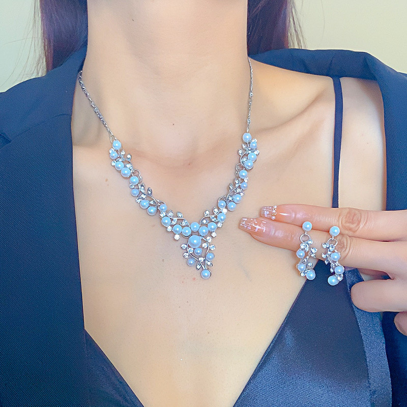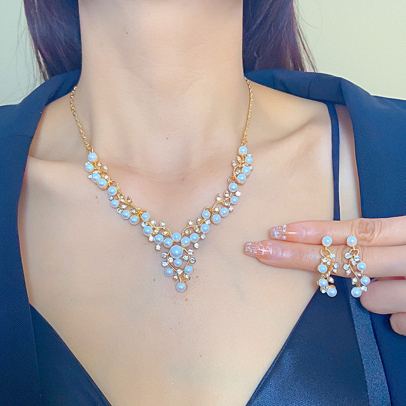 欧美新款时尚气质珍珠花朵水钻短款项链韩版项链耳环套装精美