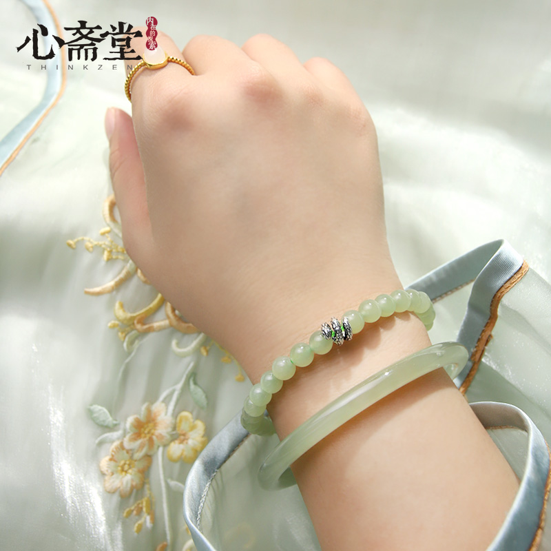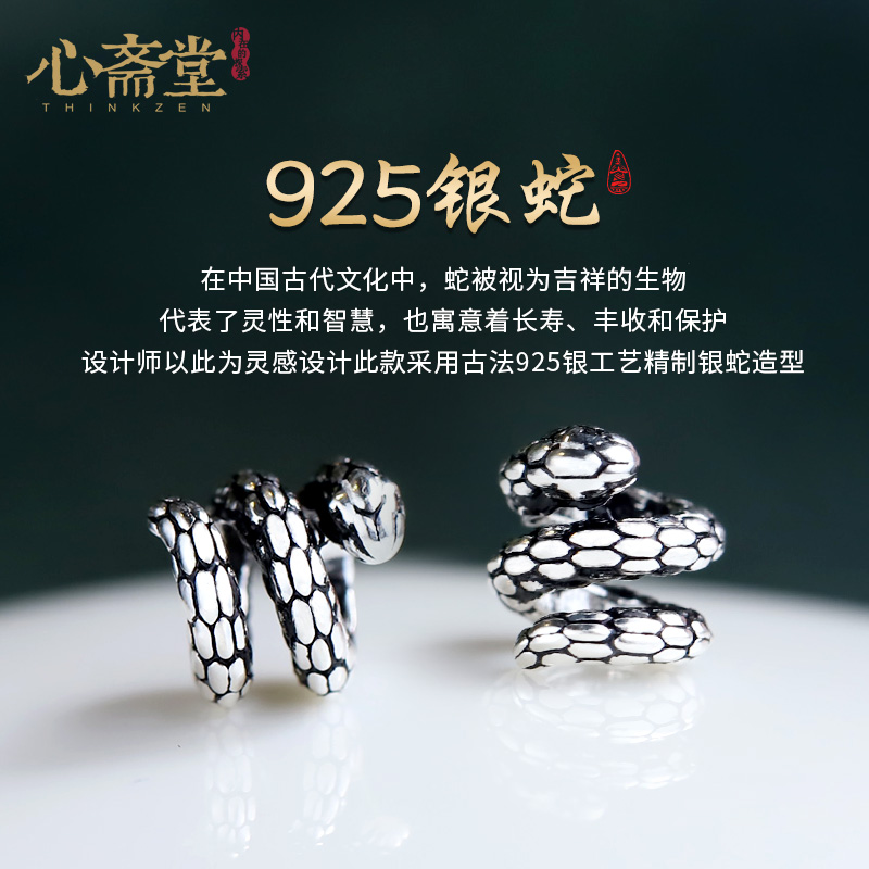 心斋堂【银蛇添福】2025蛇年本命年手链女生天然和田玉银手串送礼