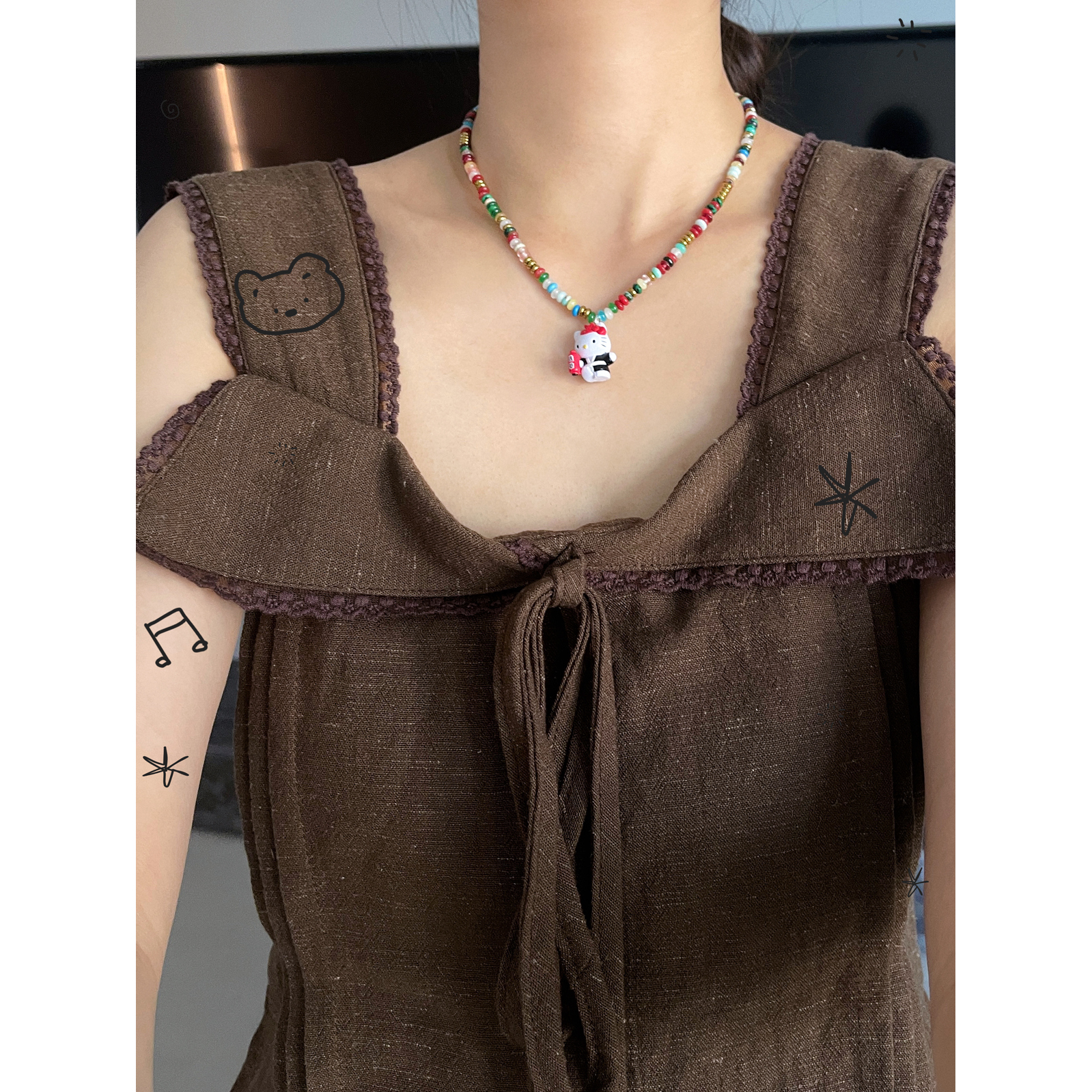 奶酪cheese 浅草和服kt手作项链 天然石低饱和色调 复古中古项链