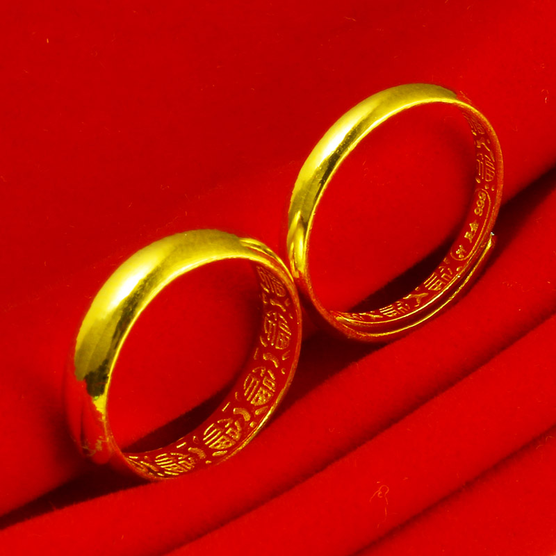 黄金戒指9999足金男女款情侣一对戒纯金食指环光面素圈真金按克重