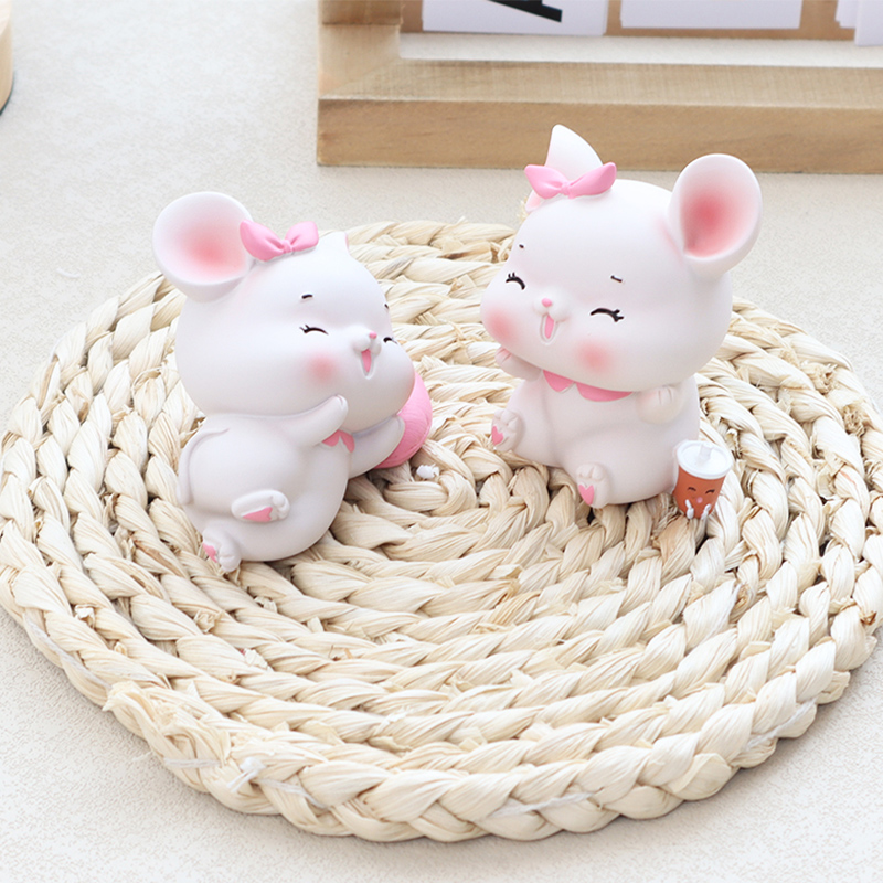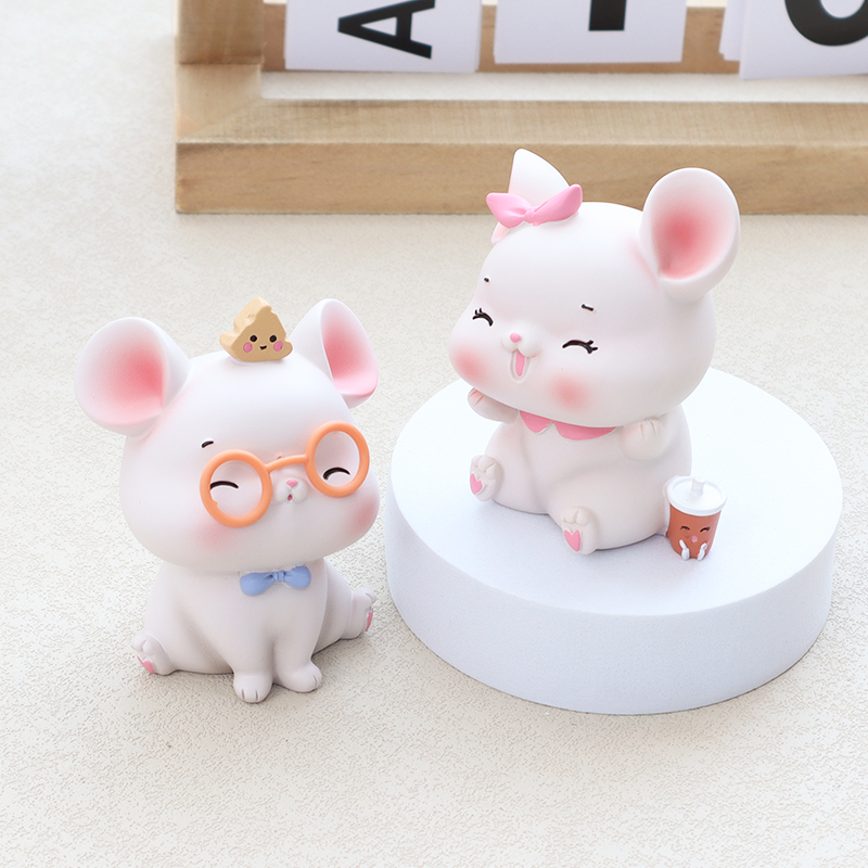 创意可爱小老鼠摆件生肖鼠卡通车载办公桌面装饰品吉祥物女生礼物