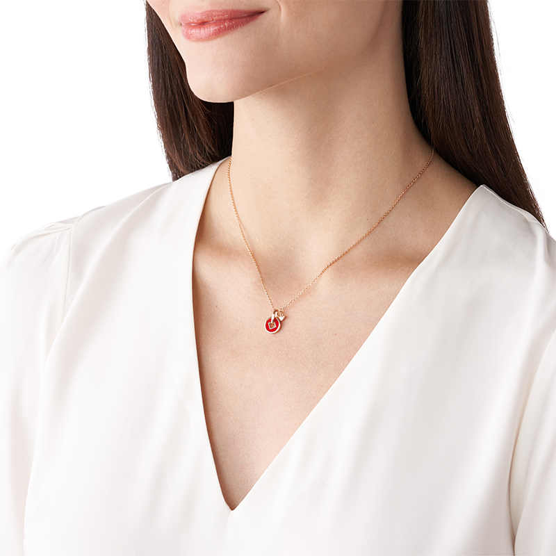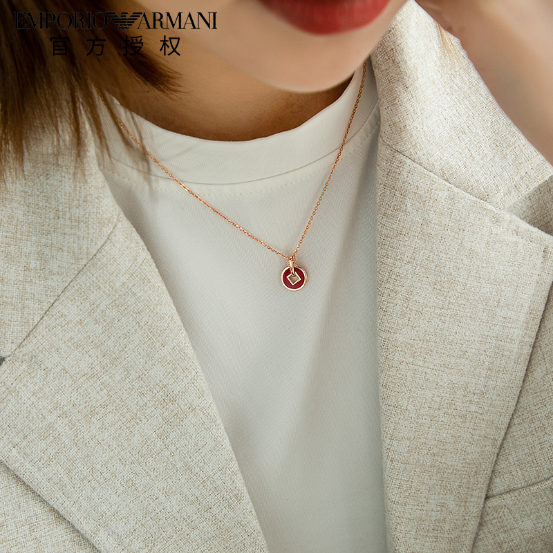 阿玛尼官方项链 时尚气质中国风红色铜钱锁骨链送女友生日礼物