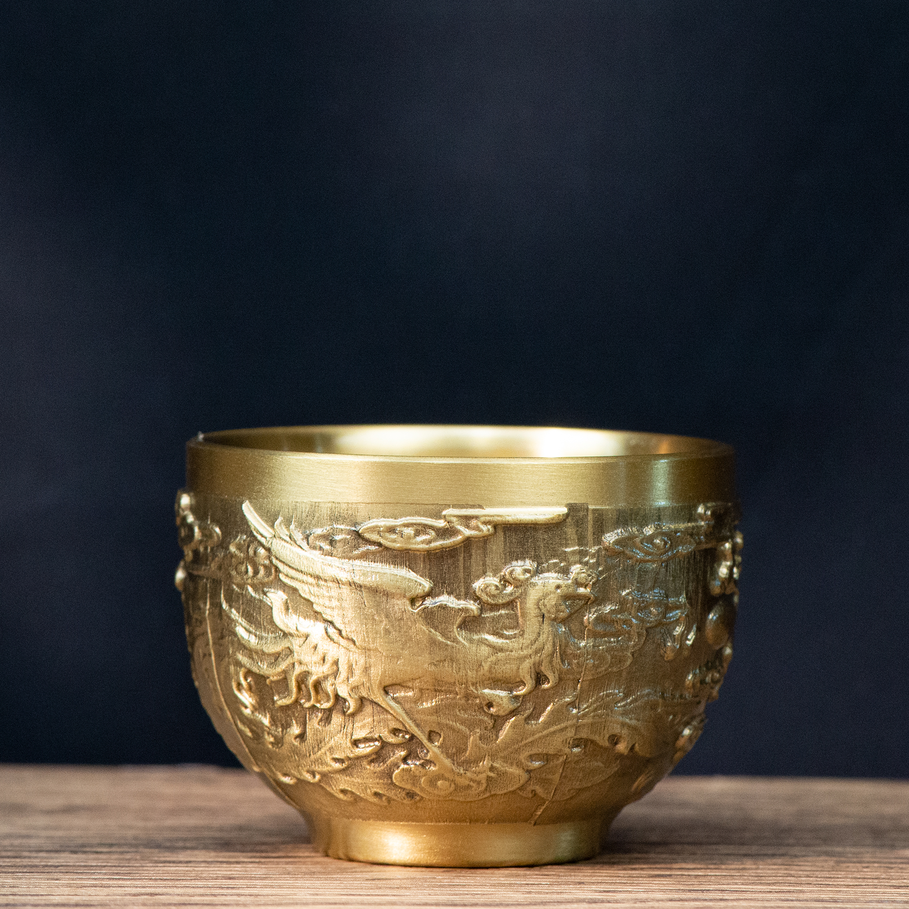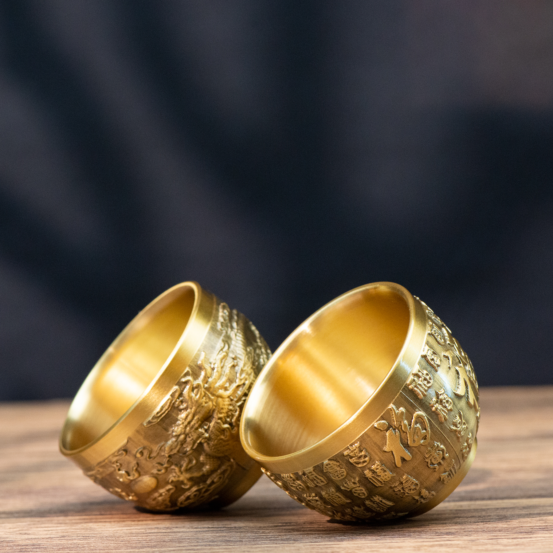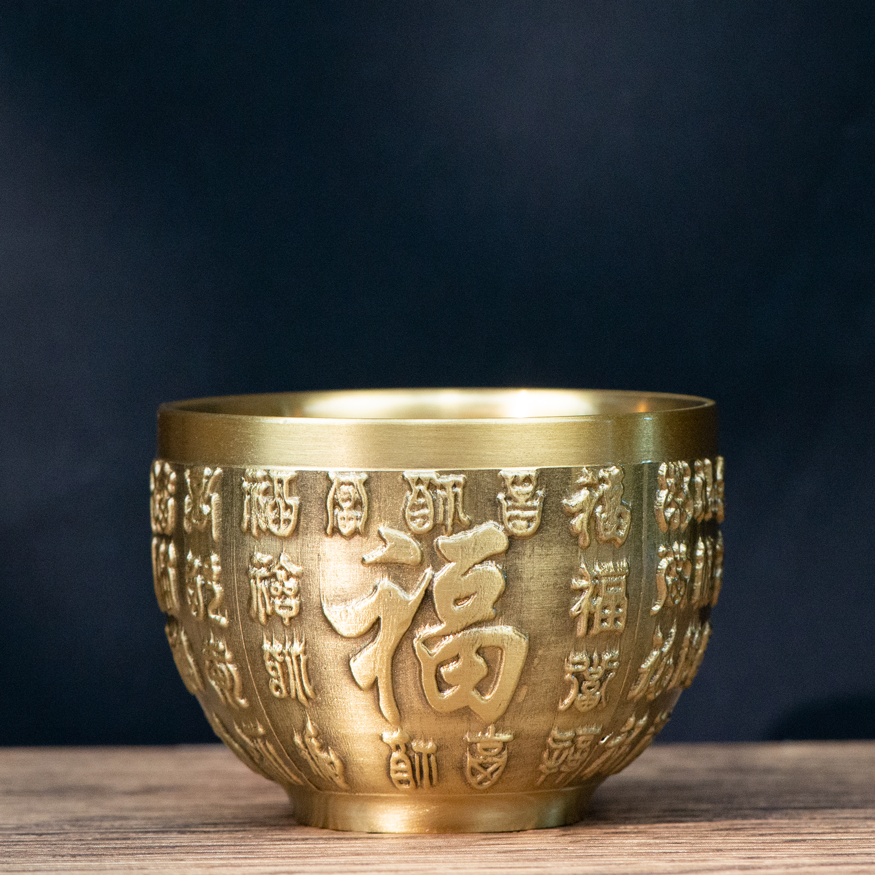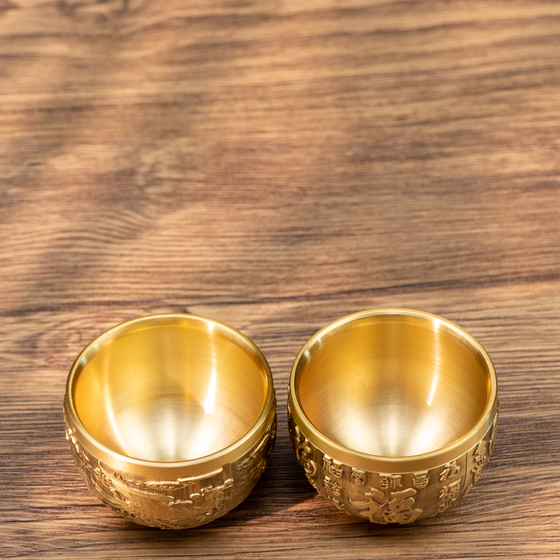 小铜记黄铜百福杯龙凤杯铜酒杯黄铜茶杯喝酒小杯子小茶杯茶道摆件