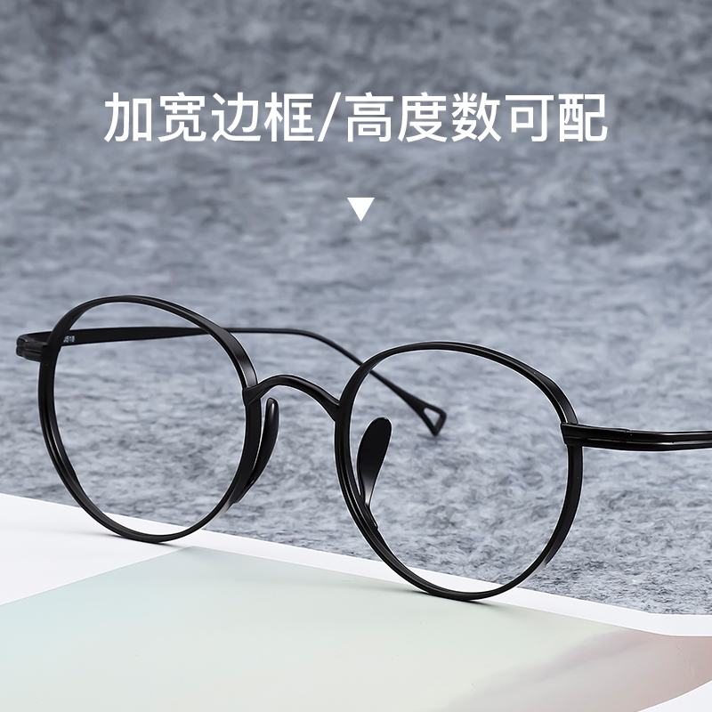 纯钛眼镜框男款日系圆框复古小框宽边超轻高度近视可配变色镜片女