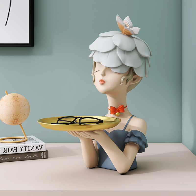 轻奢少女玄关钥匙收纳摆t件家居饰品客厅电视柜托盘装饰乔迁礼物