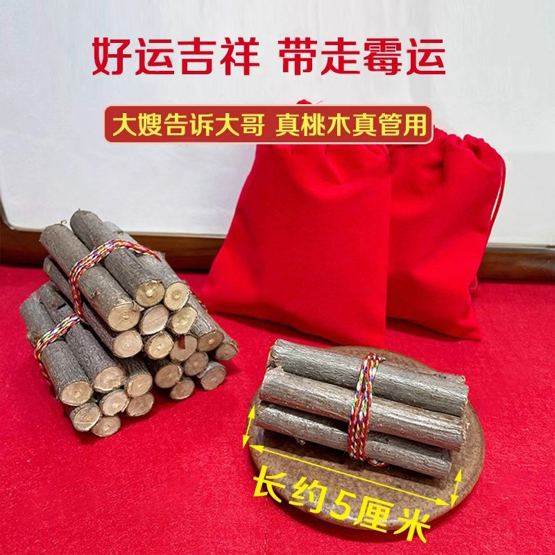 桃木东南枝五色线绑桃木枝随身携带桃木棍婴儿宝宝压惊床头挂件