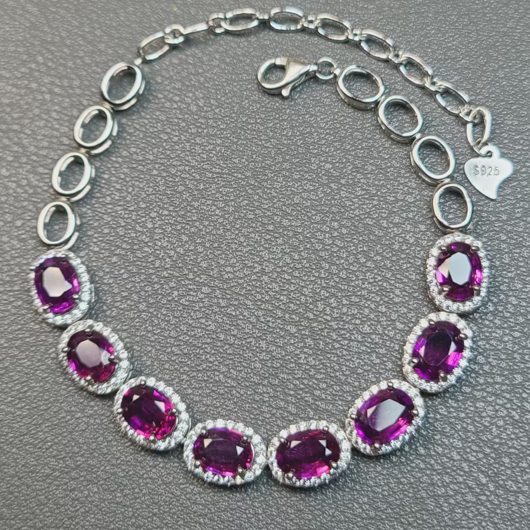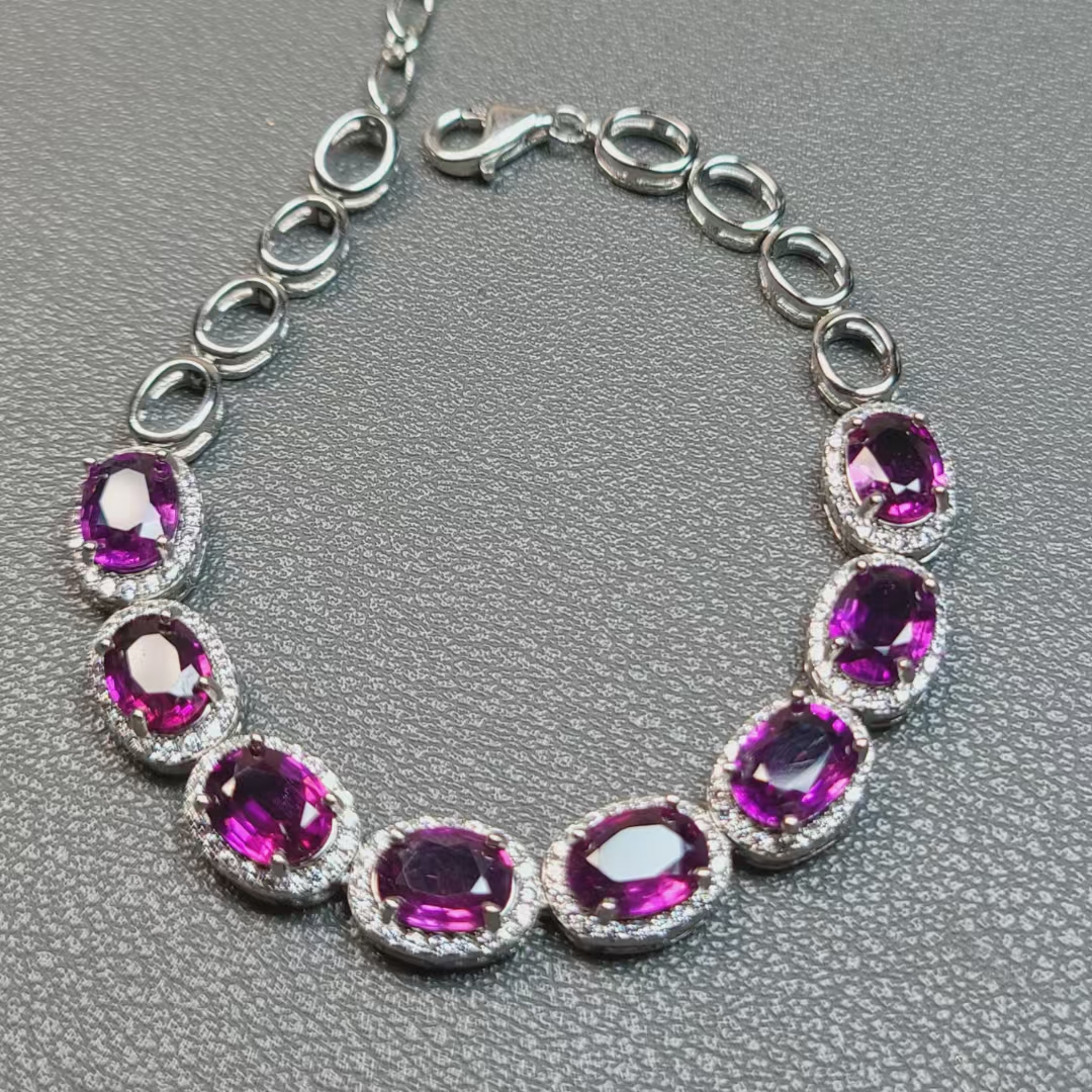 紫牙乌石榴石手链 重量6.55克拉紫色石榴石 精工925银镶 8颗群镶