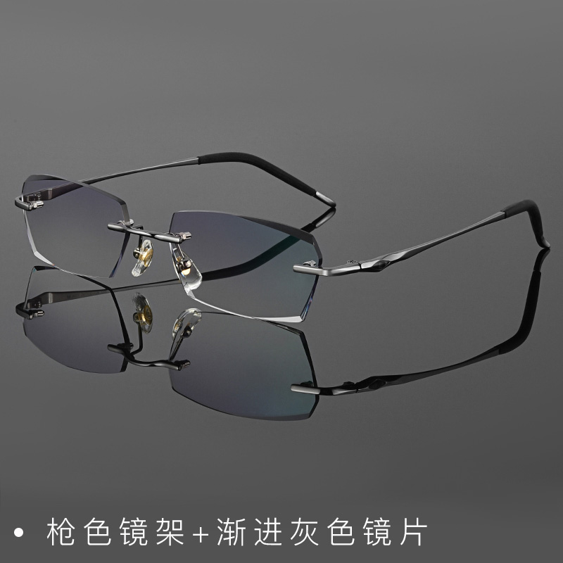 超轻纯钛近视眼镜无框男100/200/300/400/500/600度变色有度数