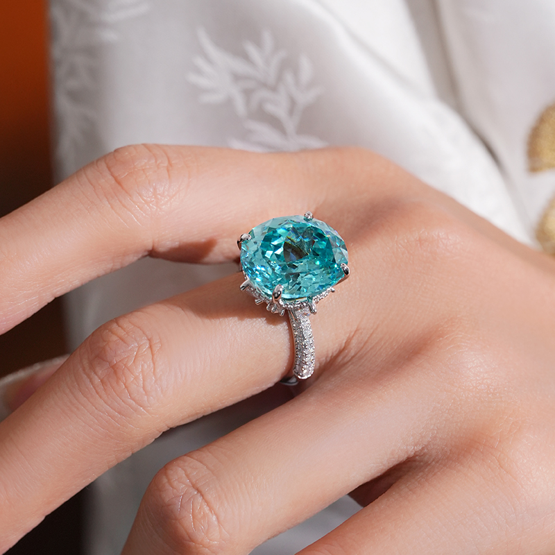 人工帕拉伊巴色戒指蓝色戒指指环S925银饰22克拉