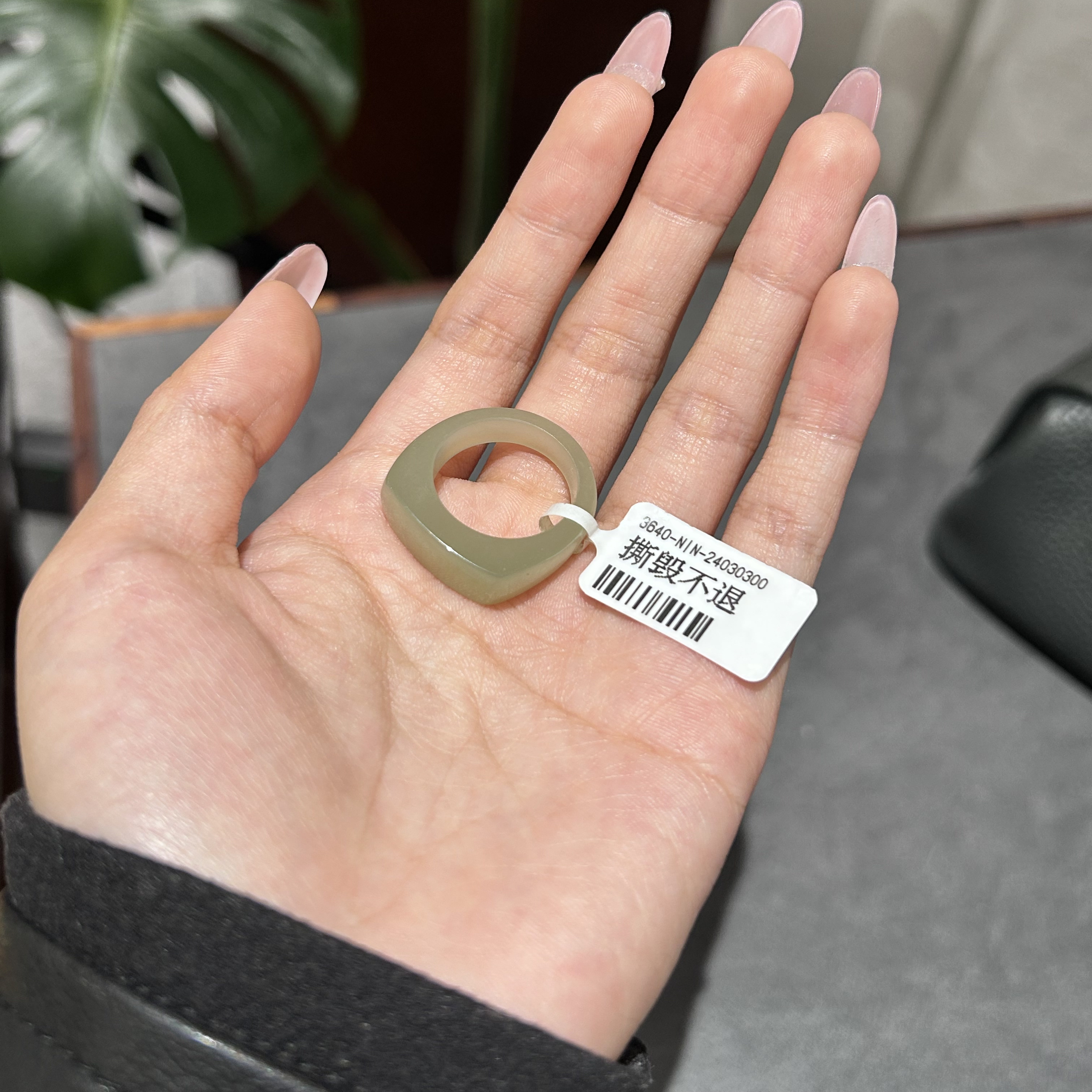 天然和田玉 16码 17.6*9.8mm晴水马鞍戒 货号3640