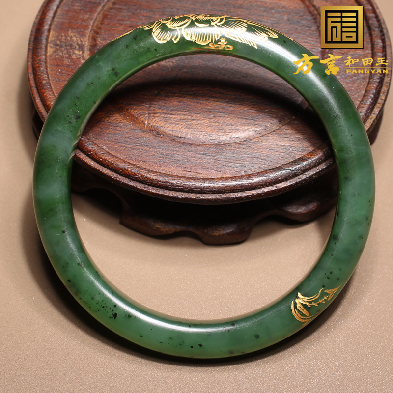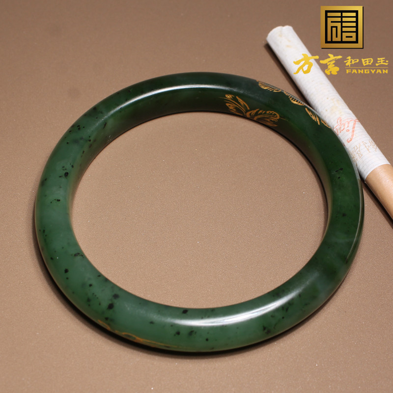 方言和田玉精品特惠俄罗斯老坑料温润细腻碧玉描金内径57mm手镯A5