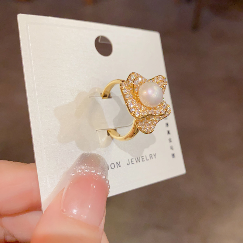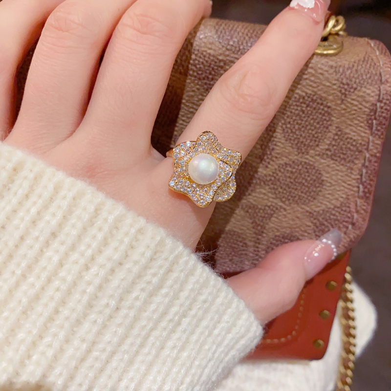 重工复古满钻花朵珍珠开口戒女个性轻奢温柔百搭设计感食指戒