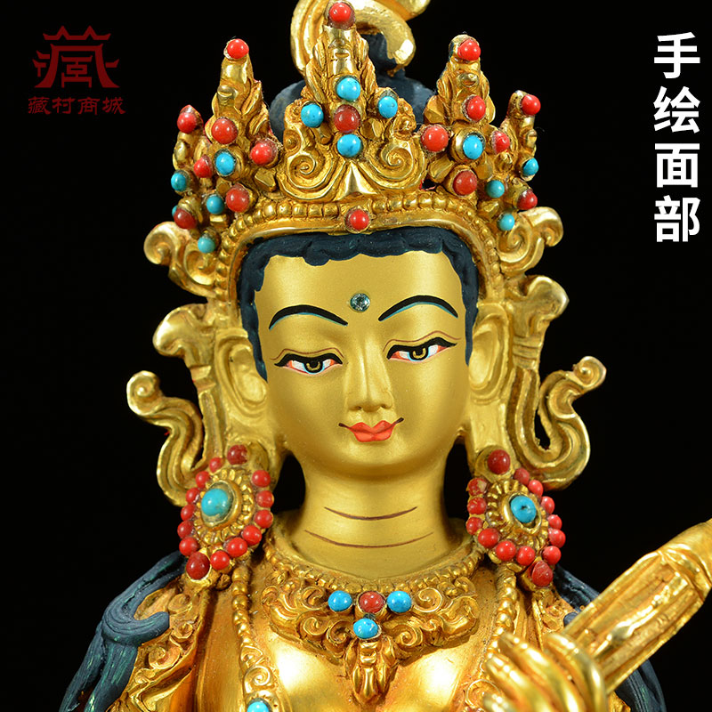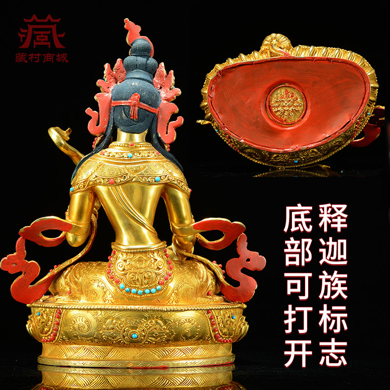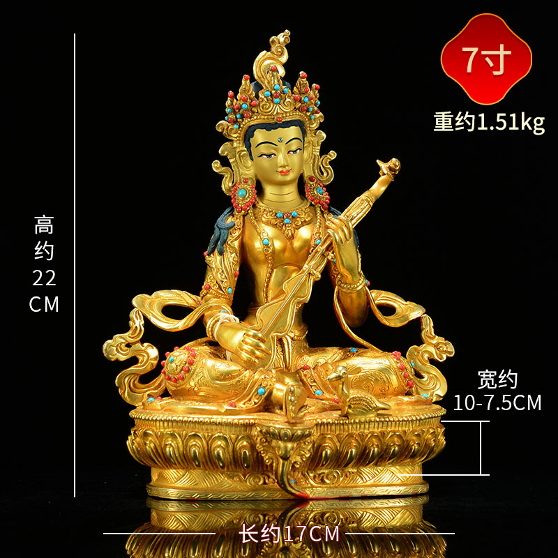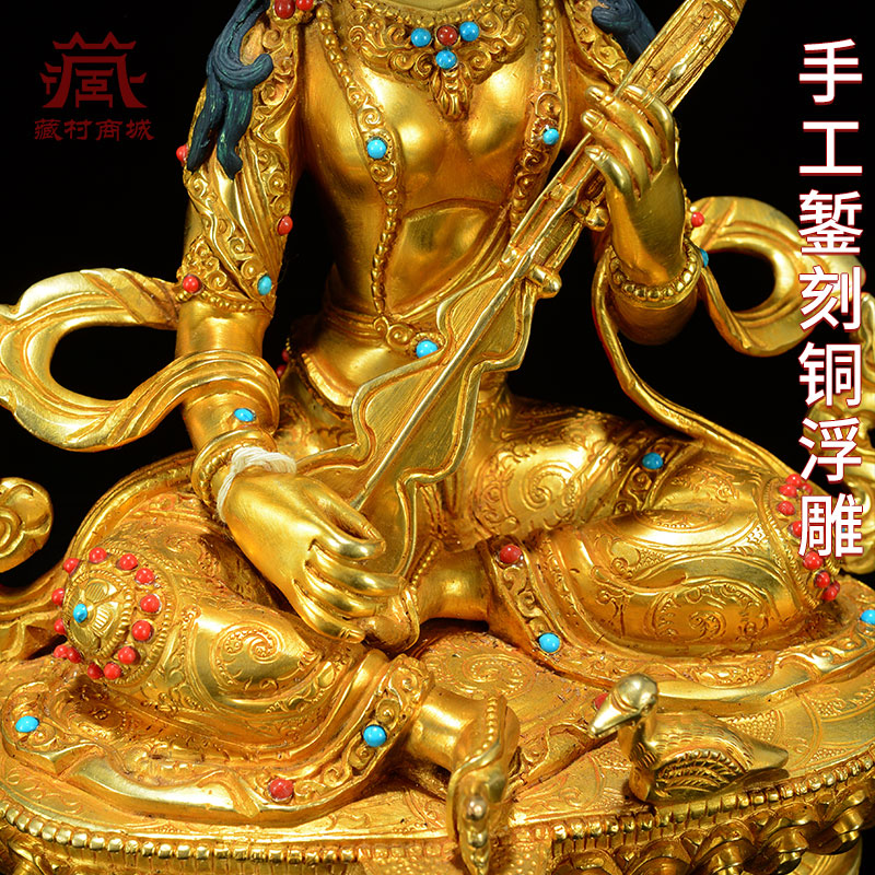 释迦族《妙音天女》尼泊尔手工全鎏金雕花室内家用桌面铜像摆件