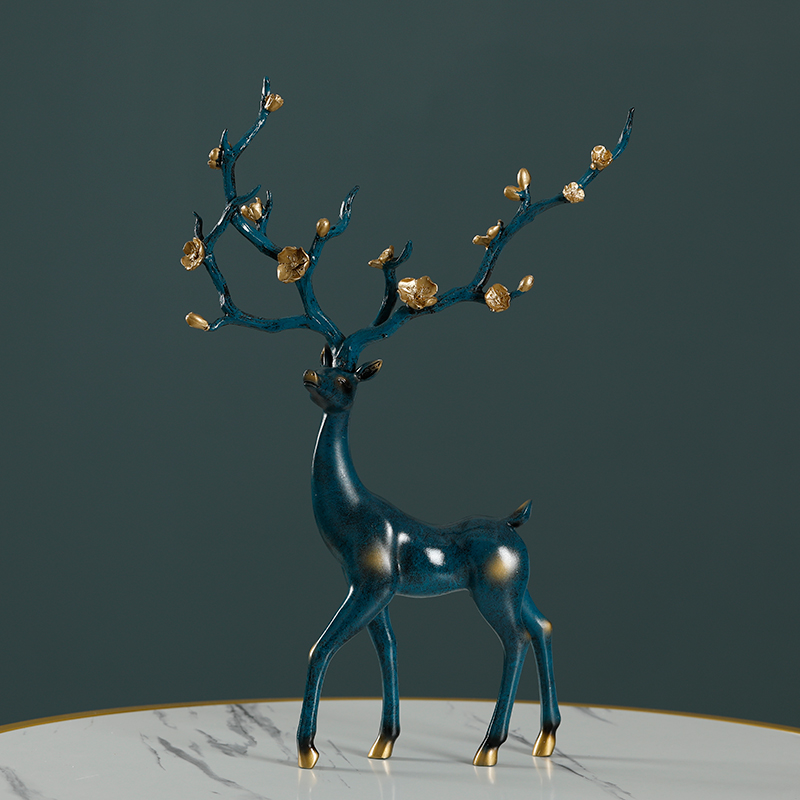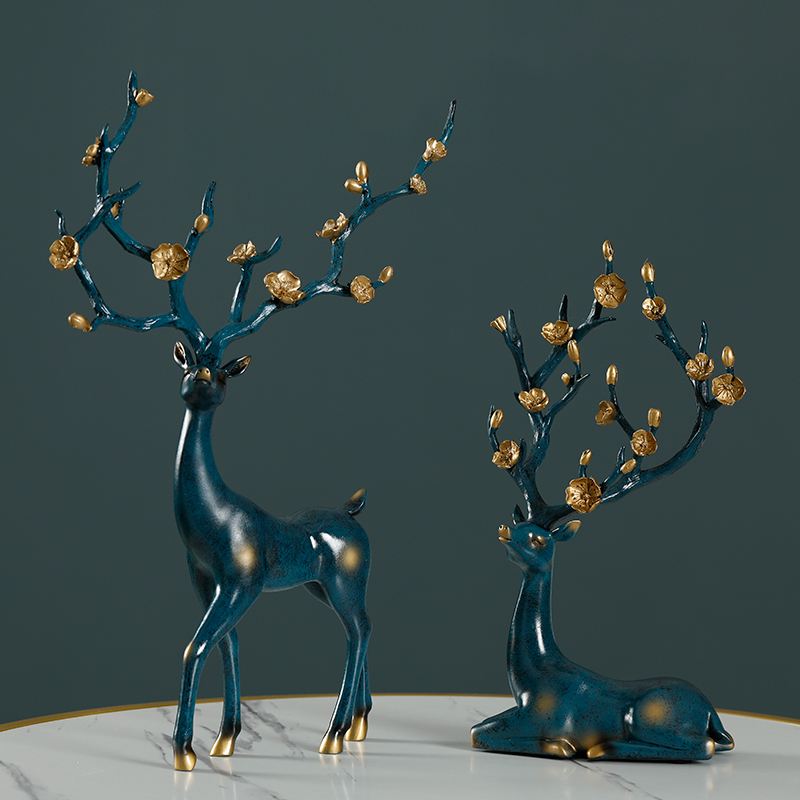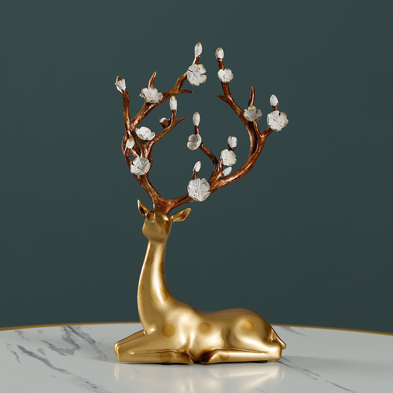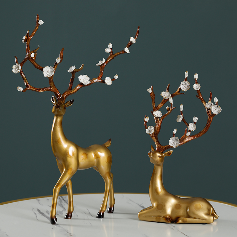 创意招财梅花鹿摆件家居饰品办公室电H视柜桌面装饰品摆设北欧轻