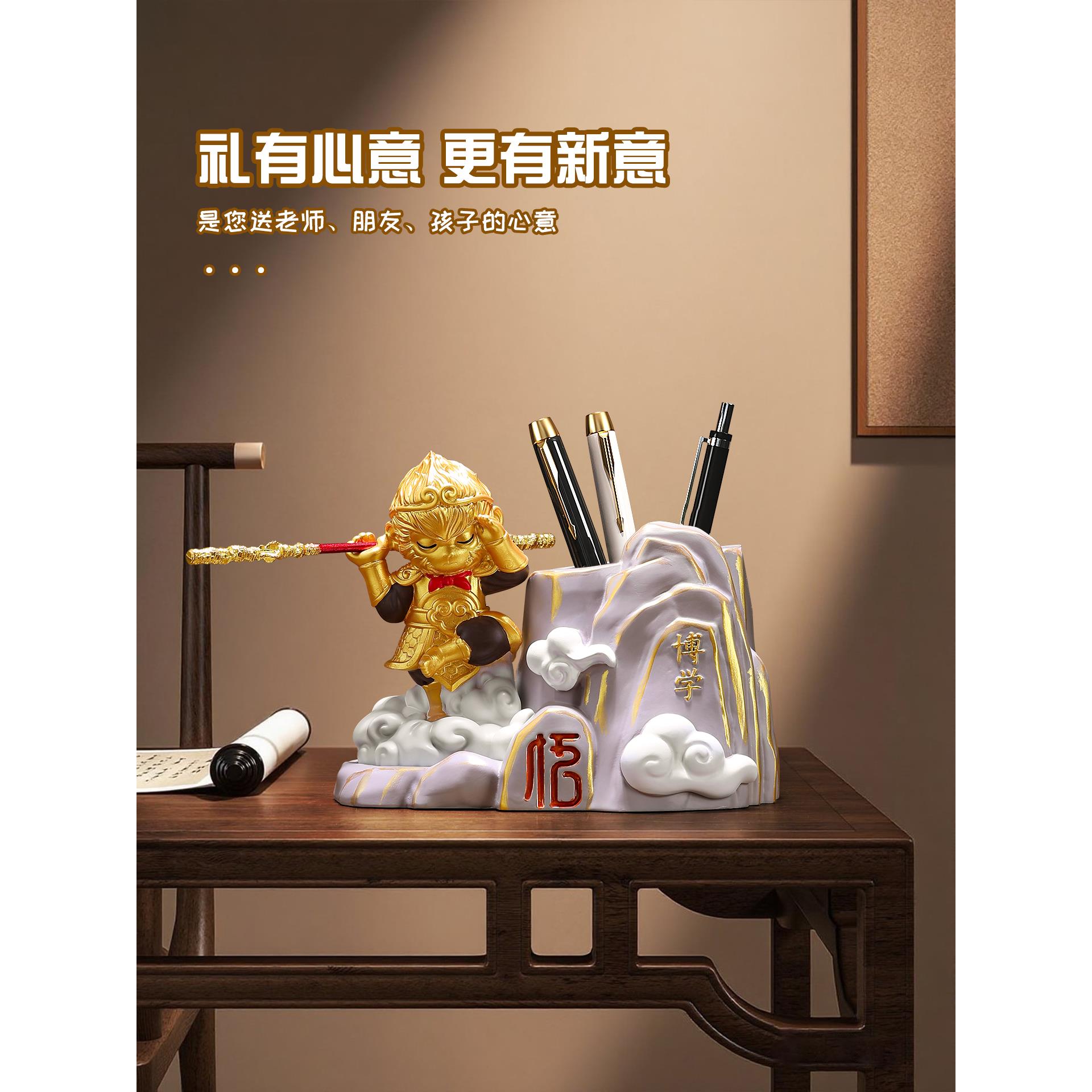悟空笔筒办公室桌面装饰品摆件轻奢高级感开学礼物送老师创意笔架