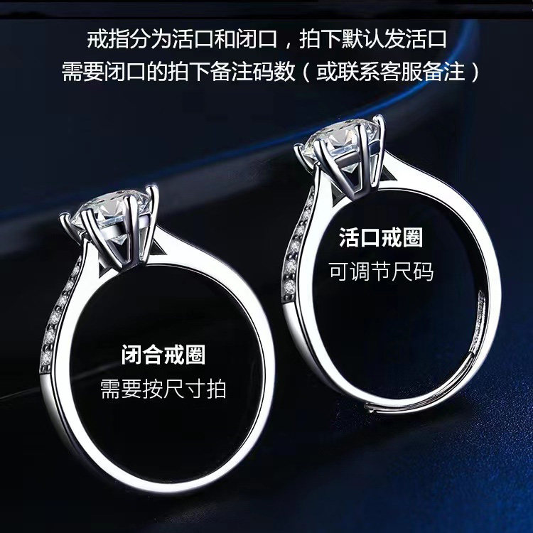 正品D色莫桑石钻戒1克拉纯银情侣男女对戒求婚结婚戒指送老婆礼物
