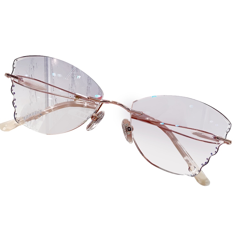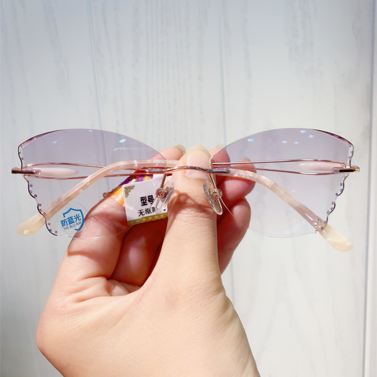 切边无框眼镜女大脸不规则蝶形防蓝光变色高度近视散光素颜美妆镜
