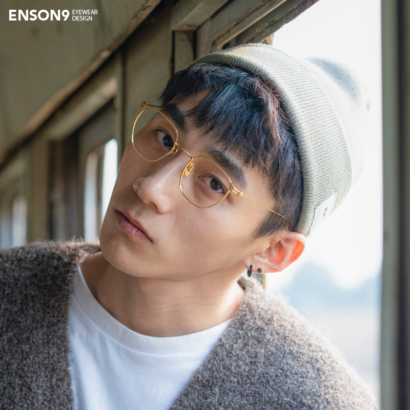 enson9日系不规则细方框眼镜潮男女 复古超轻纯钛可配近视平光架