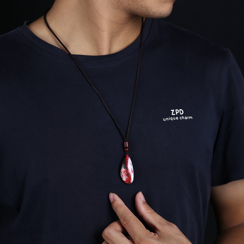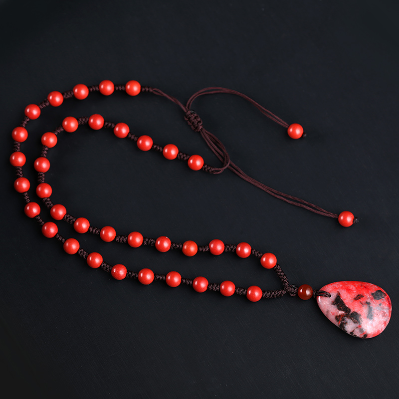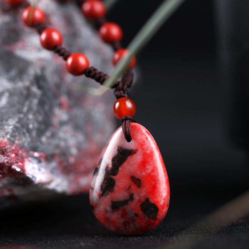 缘之固旗舰店正品原石原矿朱砂吊坠男水滴民族风项坠礼物项链女