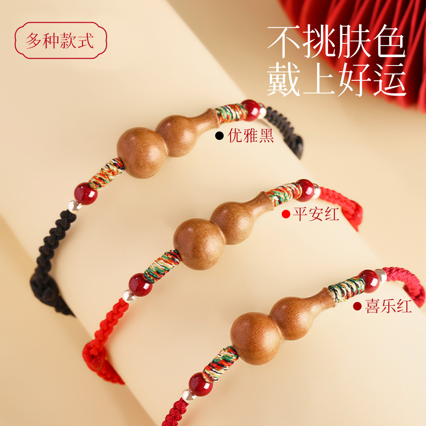 天然老桃木葫芦马年本命年手链男女朱砂转运珠红色手绳编织绳脚链