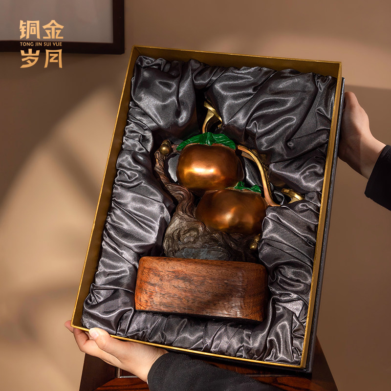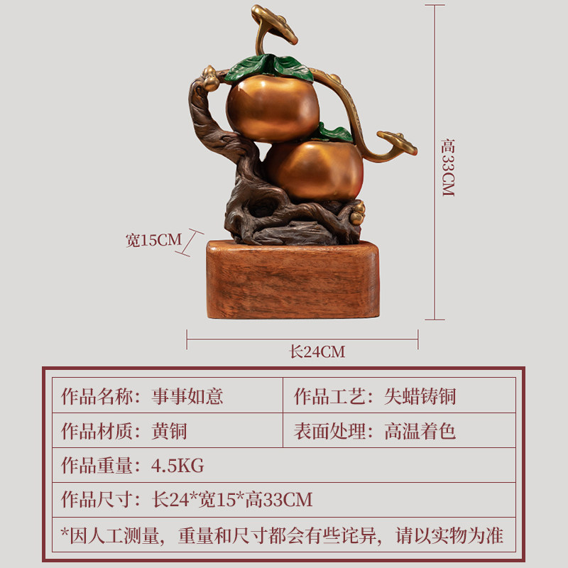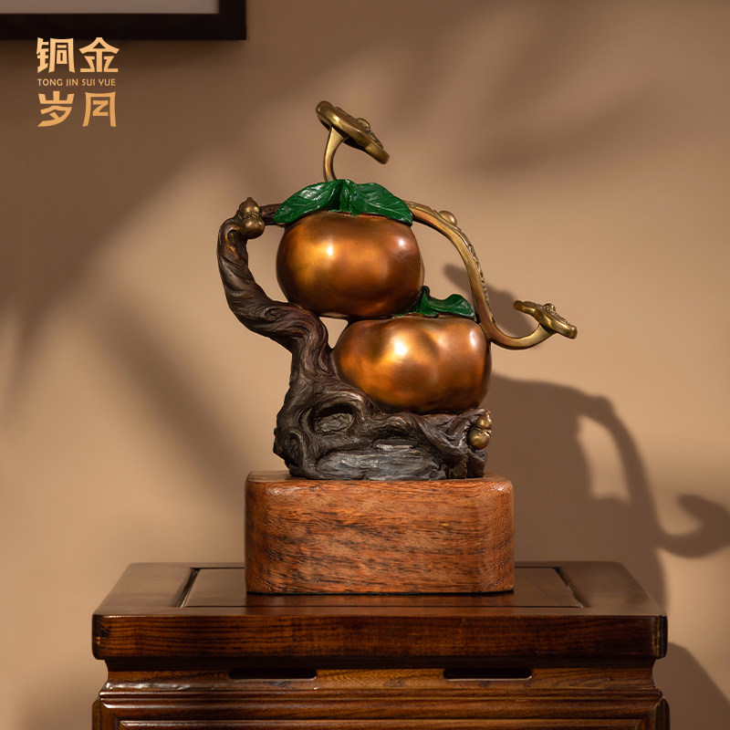 《事事如意》柿柿如意柿子铜摆件工艺品新中式家居客厅玄关装饰品