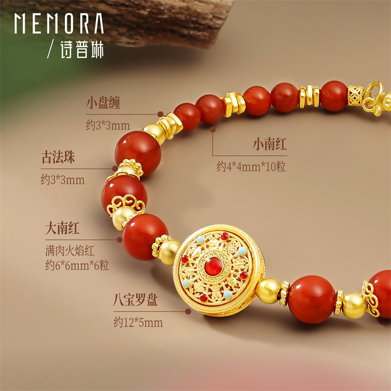 【剩1件】诗普琳足金黄金八宝罗盘南红玛瑙女手链手串 送女友礼物