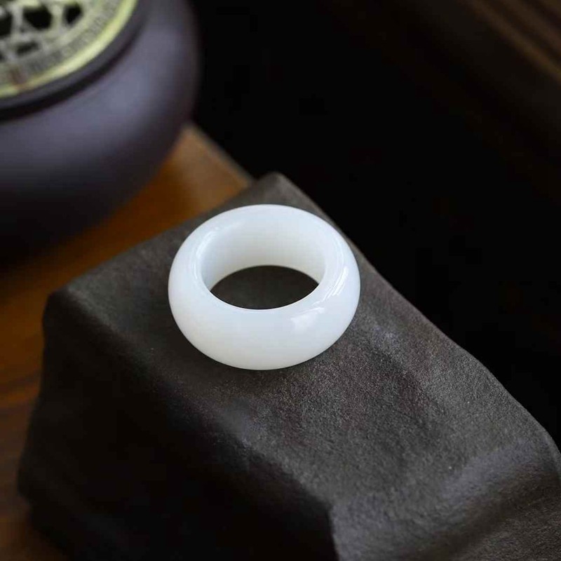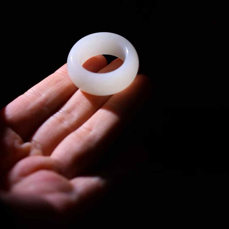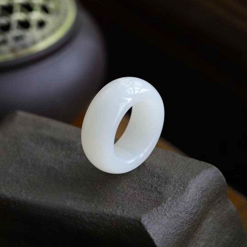 天然新疆和田玉玉器工厂店俄料羊脂级白玉简约款玉石素面戒指带证