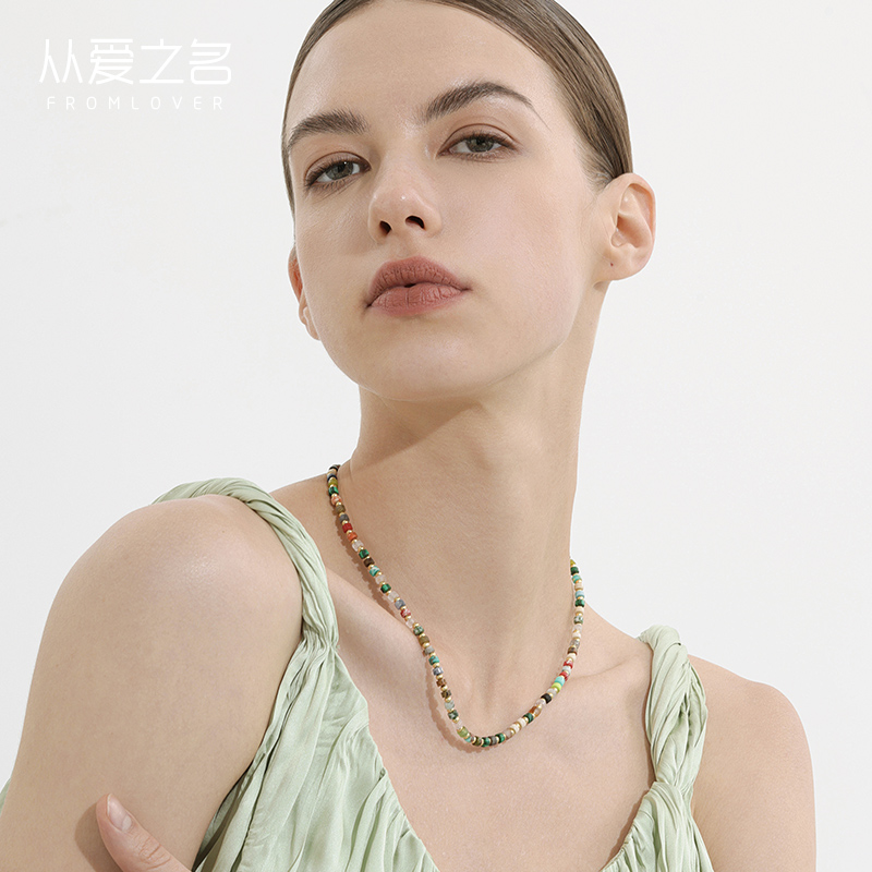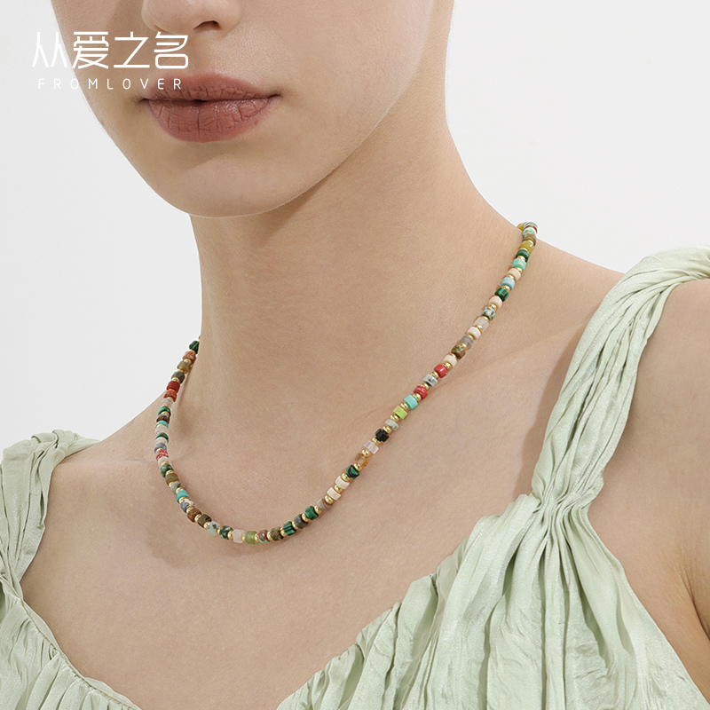 从爱之名彩虹石项链女多巴胺彩色天然石串珠锁骨链轻奢高级感饰品