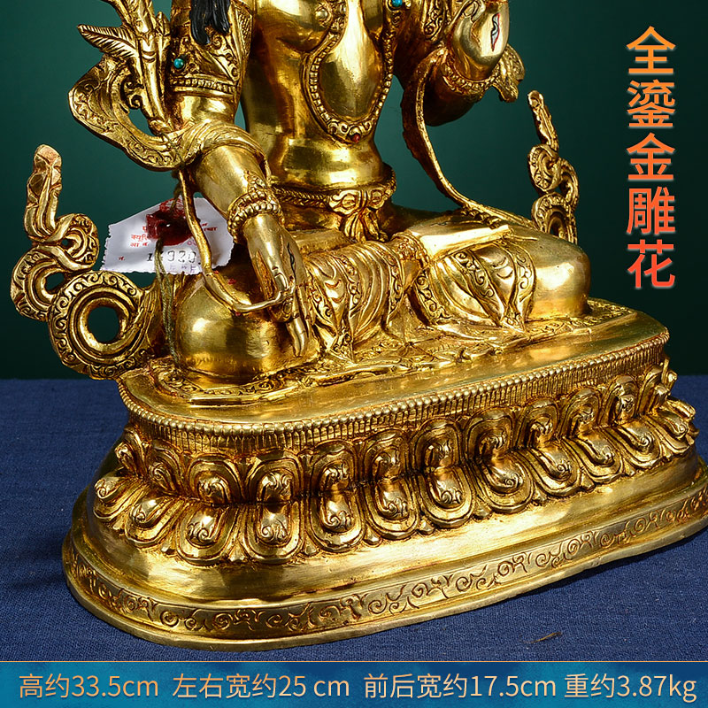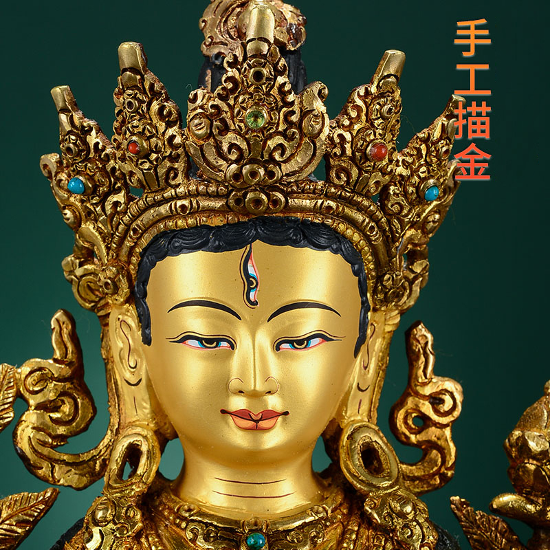 尼泊尔手工白度母铜像鎏金雕花彩珠镶嵌居家桌面度母像10寸