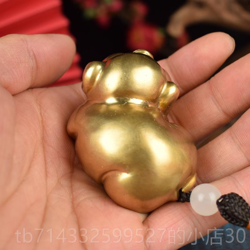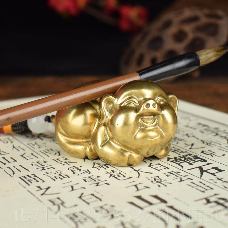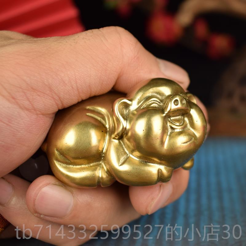 高档全黄铜心生小肖猪桌面摆件男女手把件乐在其中实笔文房镇纸搁