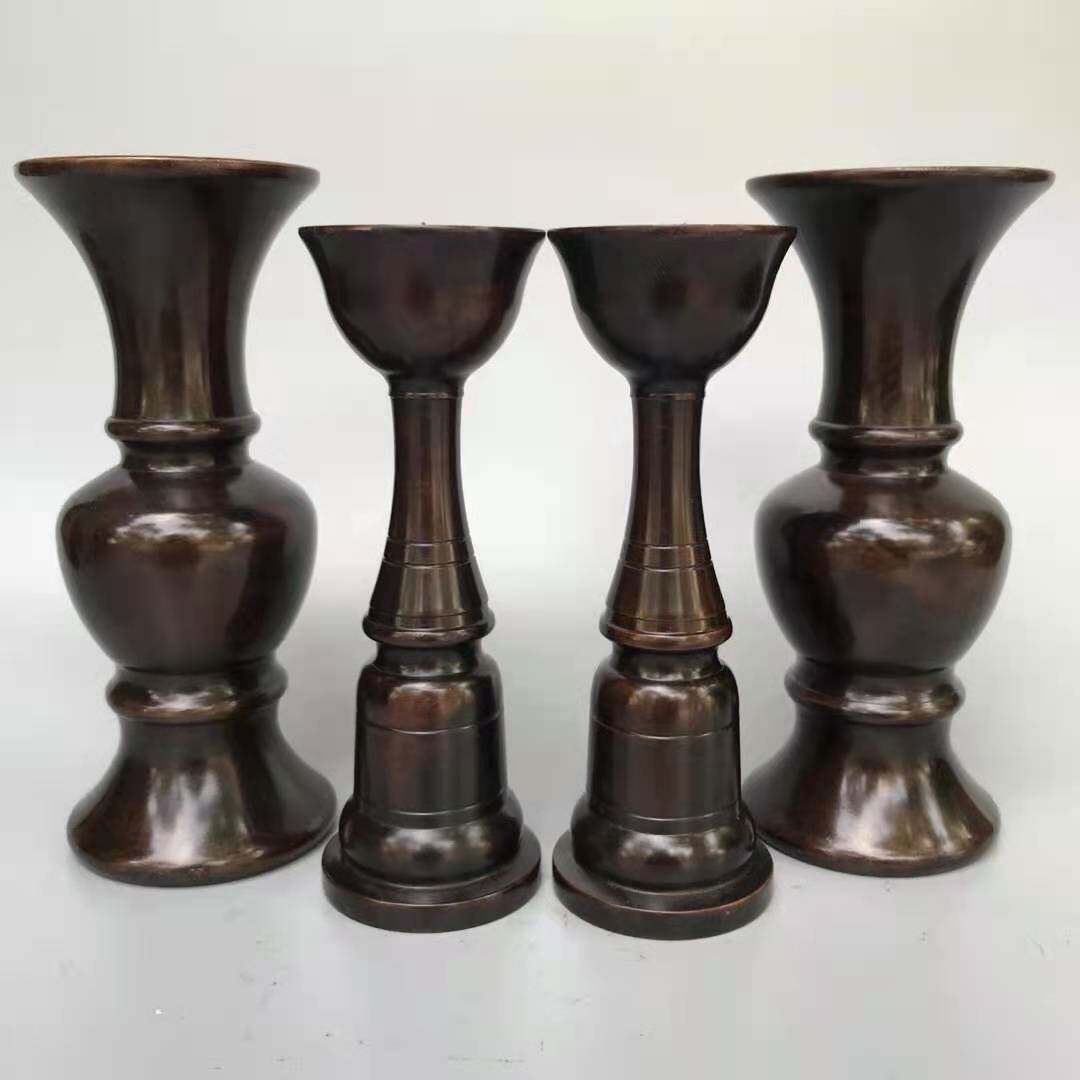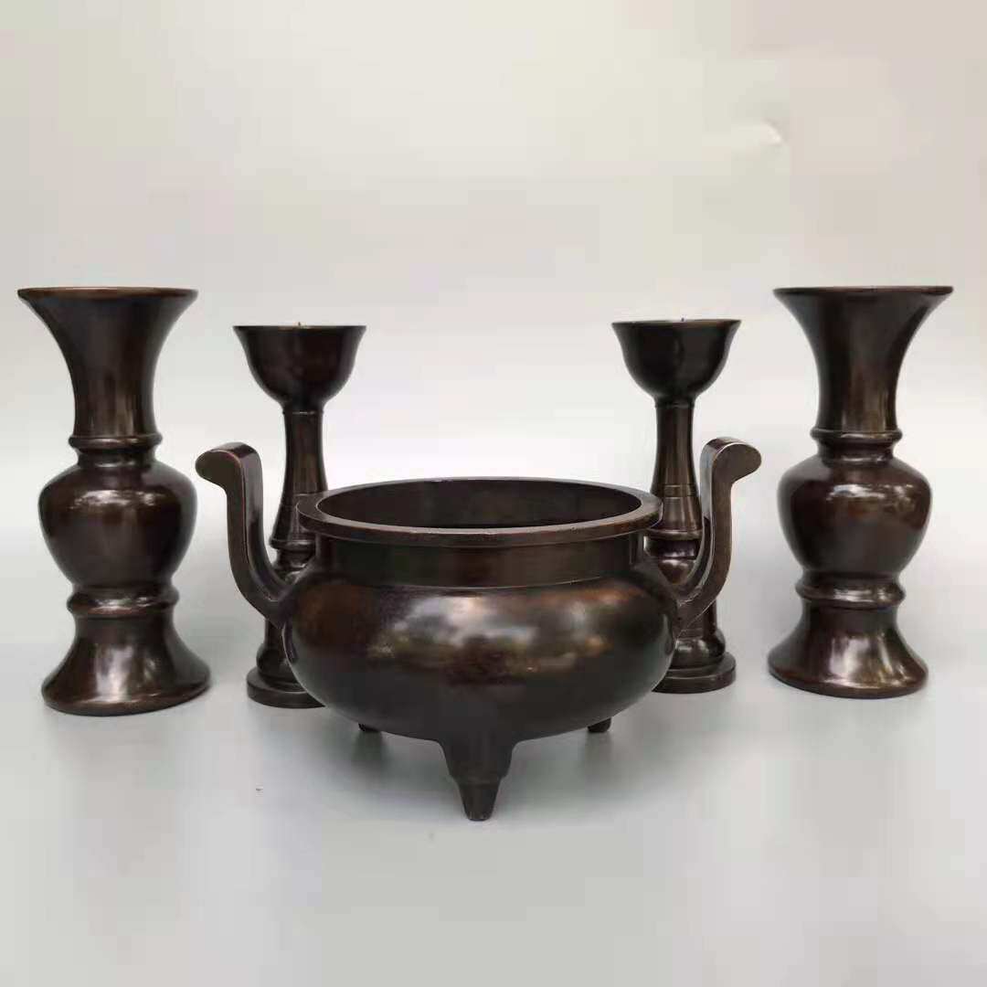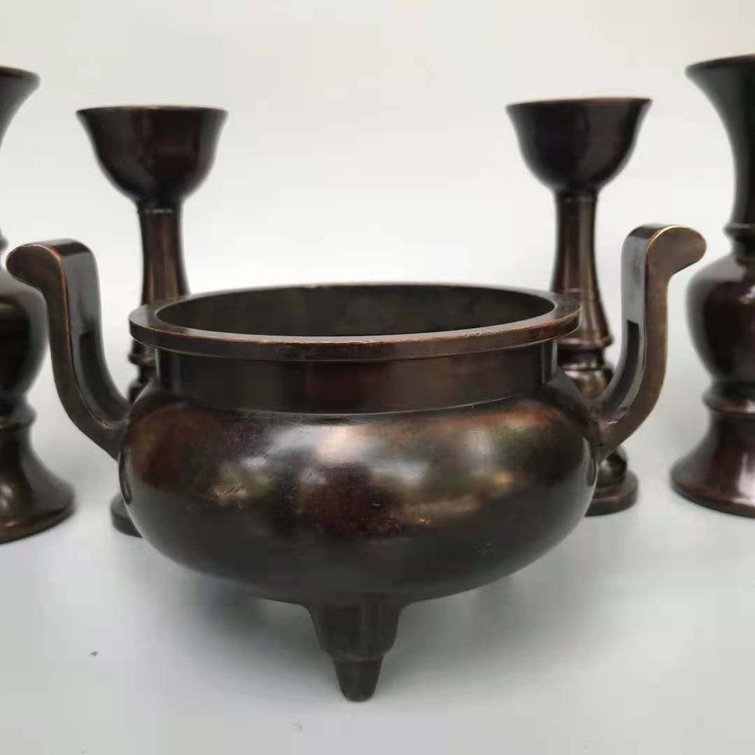 复古纯铜五供香炉烛台佛前供奉室内铜香炉祖先桌面供奉摆件