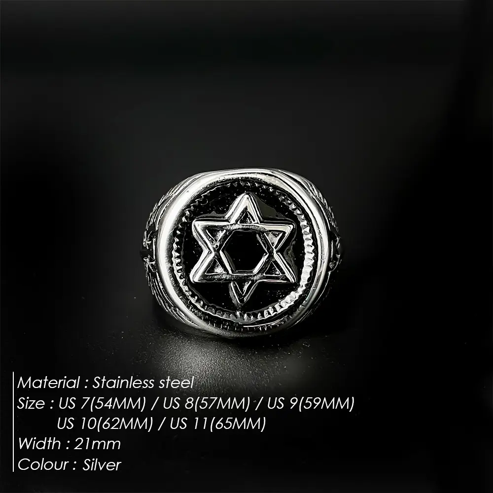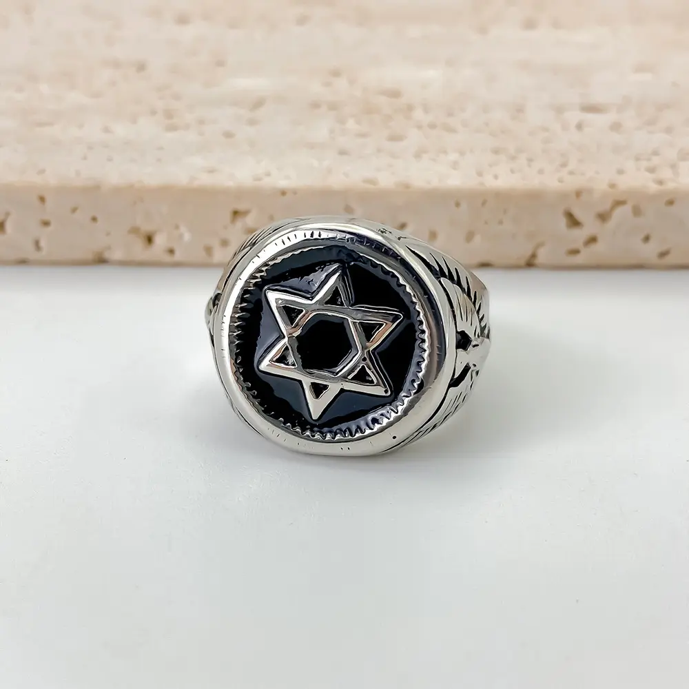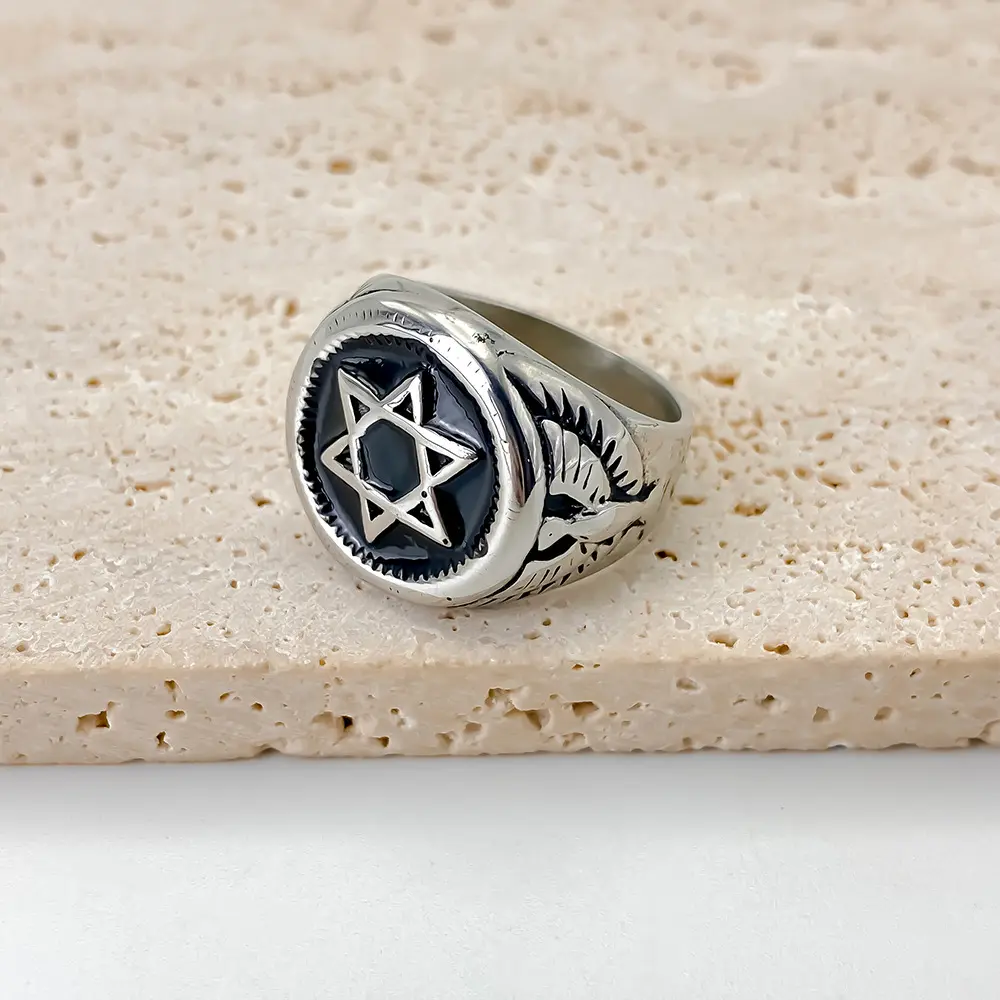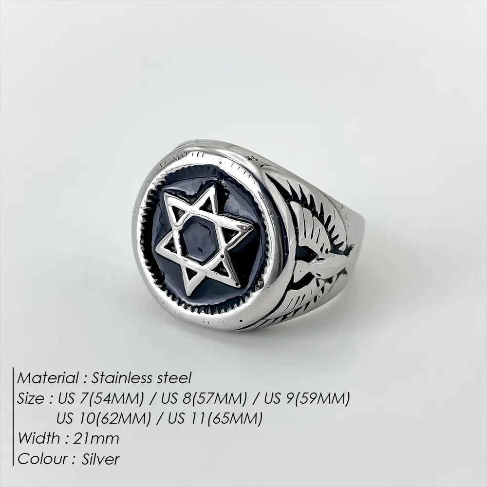 eManco欧美爆款男女士情侣戒指不锈钢戒指六芒星鹰头饰品