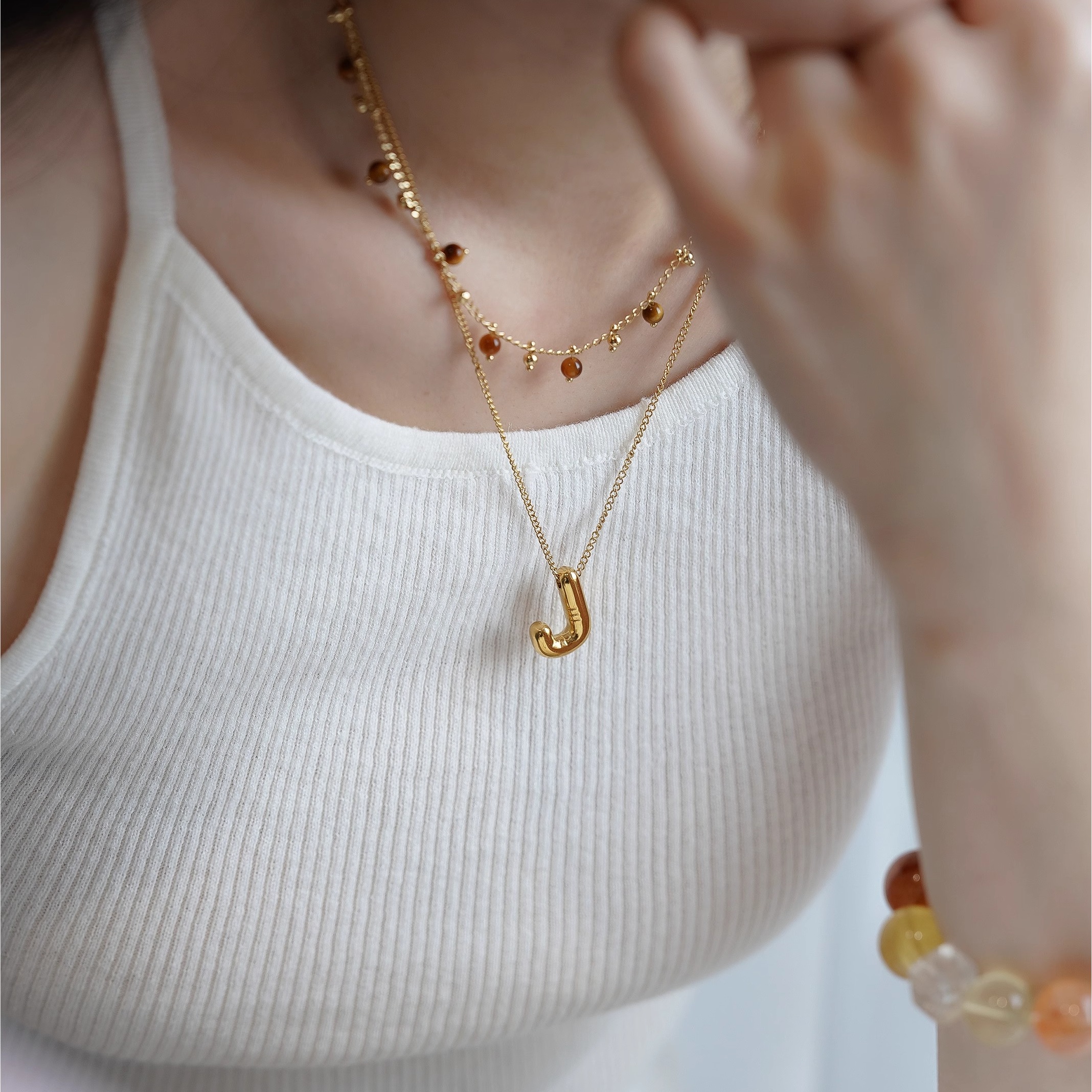 JoJo|小众DIY生日礼物字母吊坠项链波西米亚天然虎眼石项链叠戴