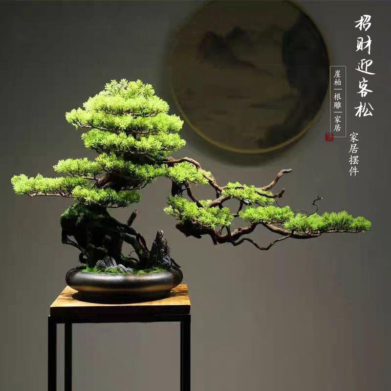 仿真迎客松实木绿植盆景家居装饰摆件中式客厅玄关办公室桌面盆栽