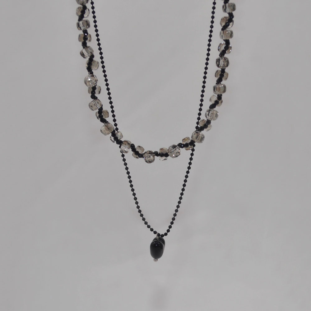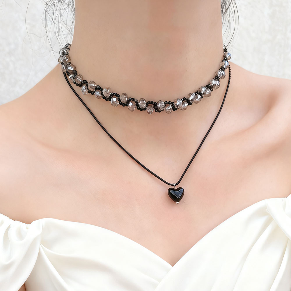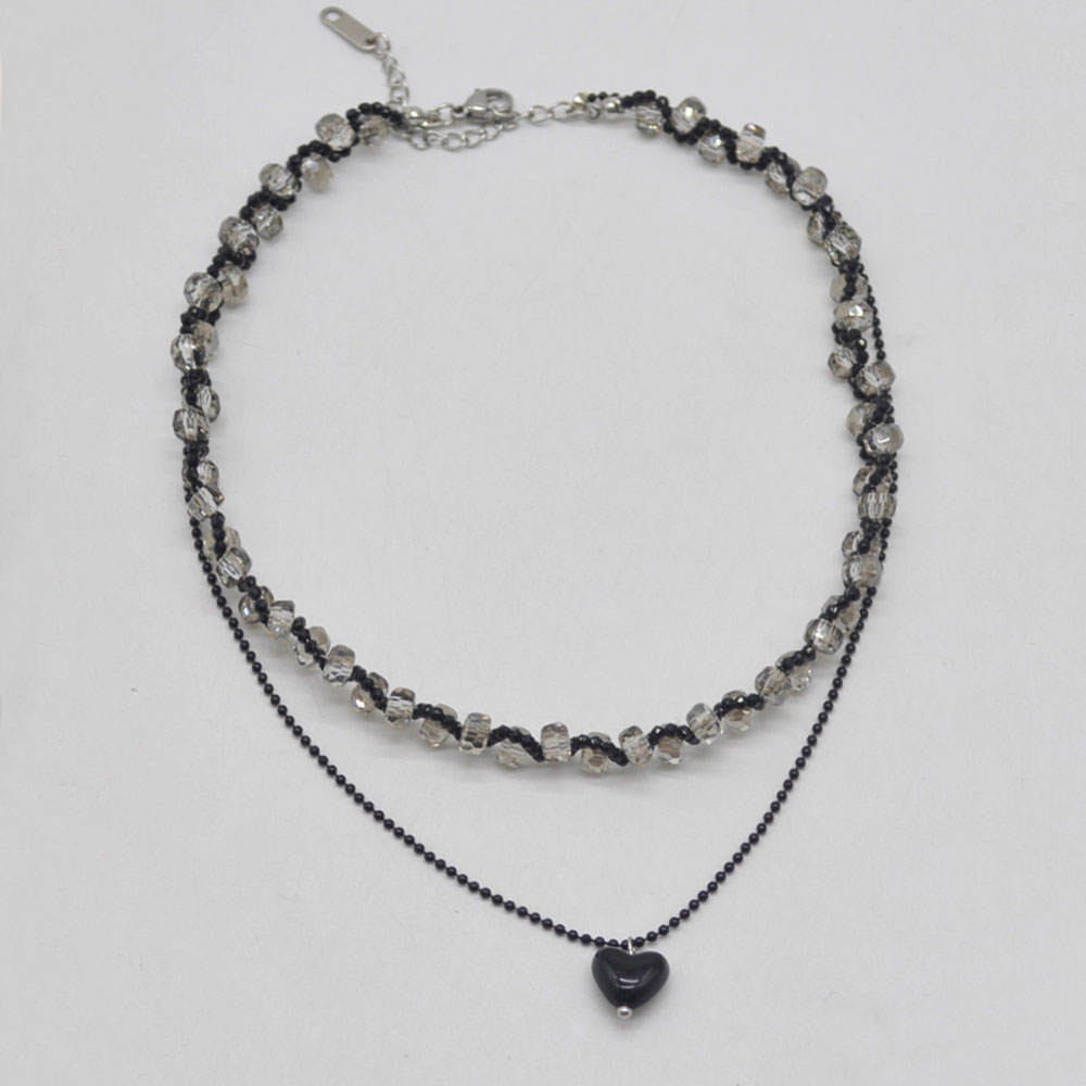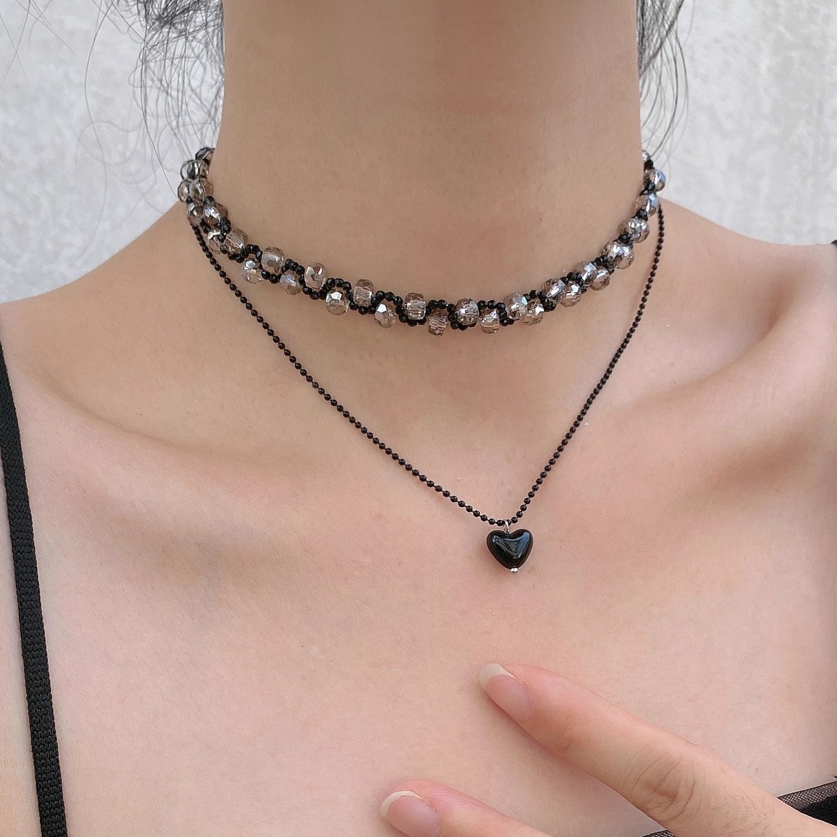 编织缠绕黑色水晶爱心吊坠项链女小众时尚个性锁骨链时髦独特颈链
