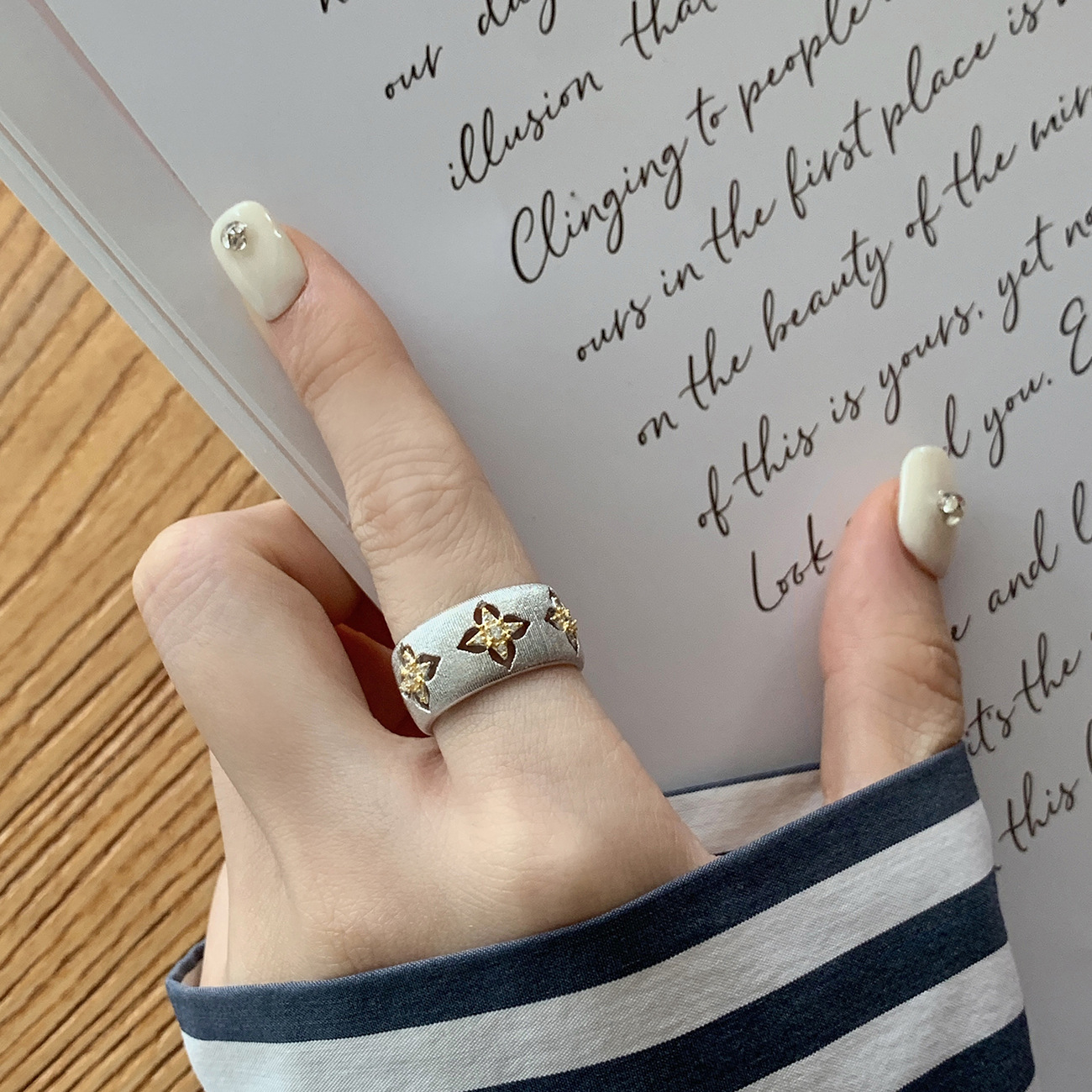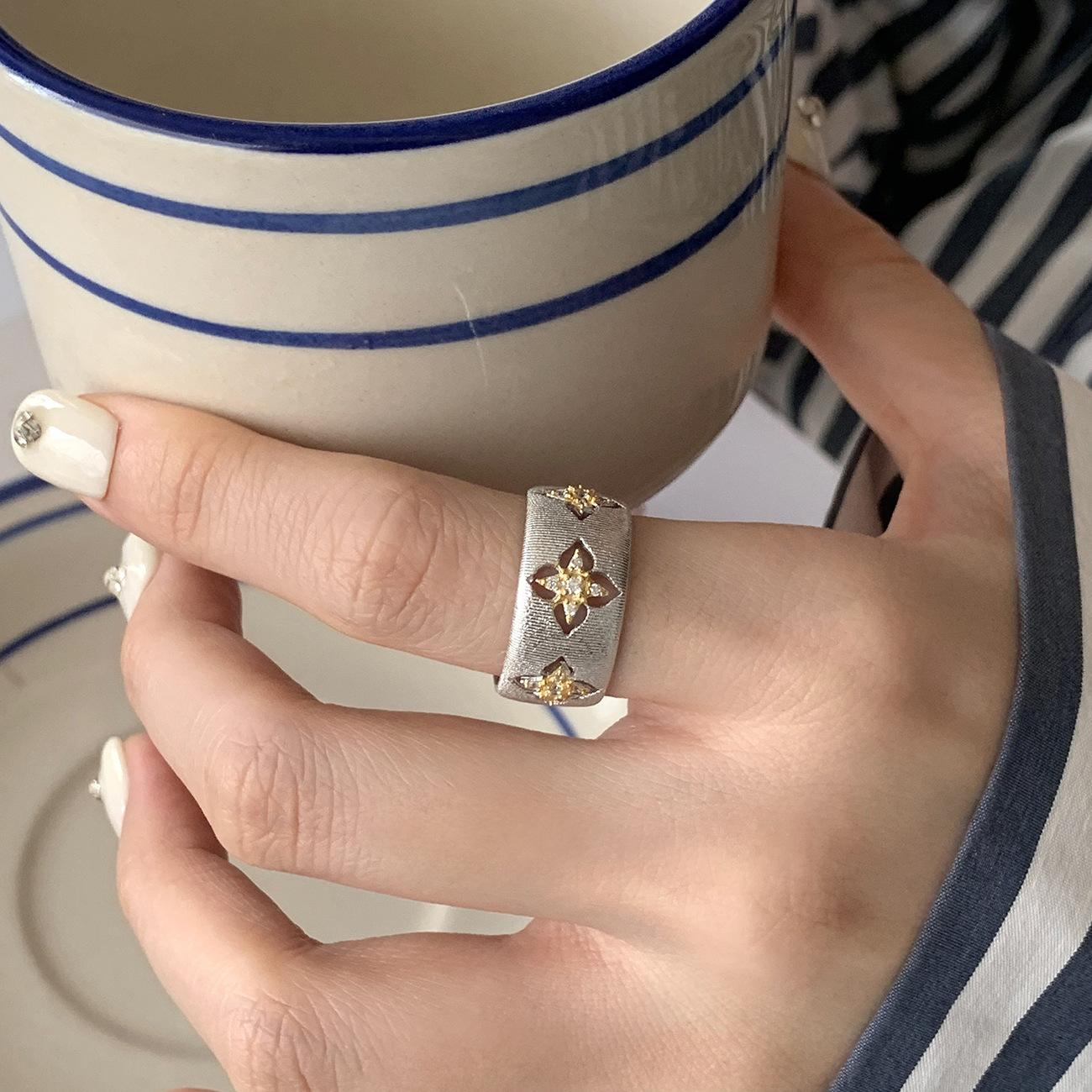 通体s925纯银四叶草锆石开口戒指女宫延拉丝小众设计轻奢食指环