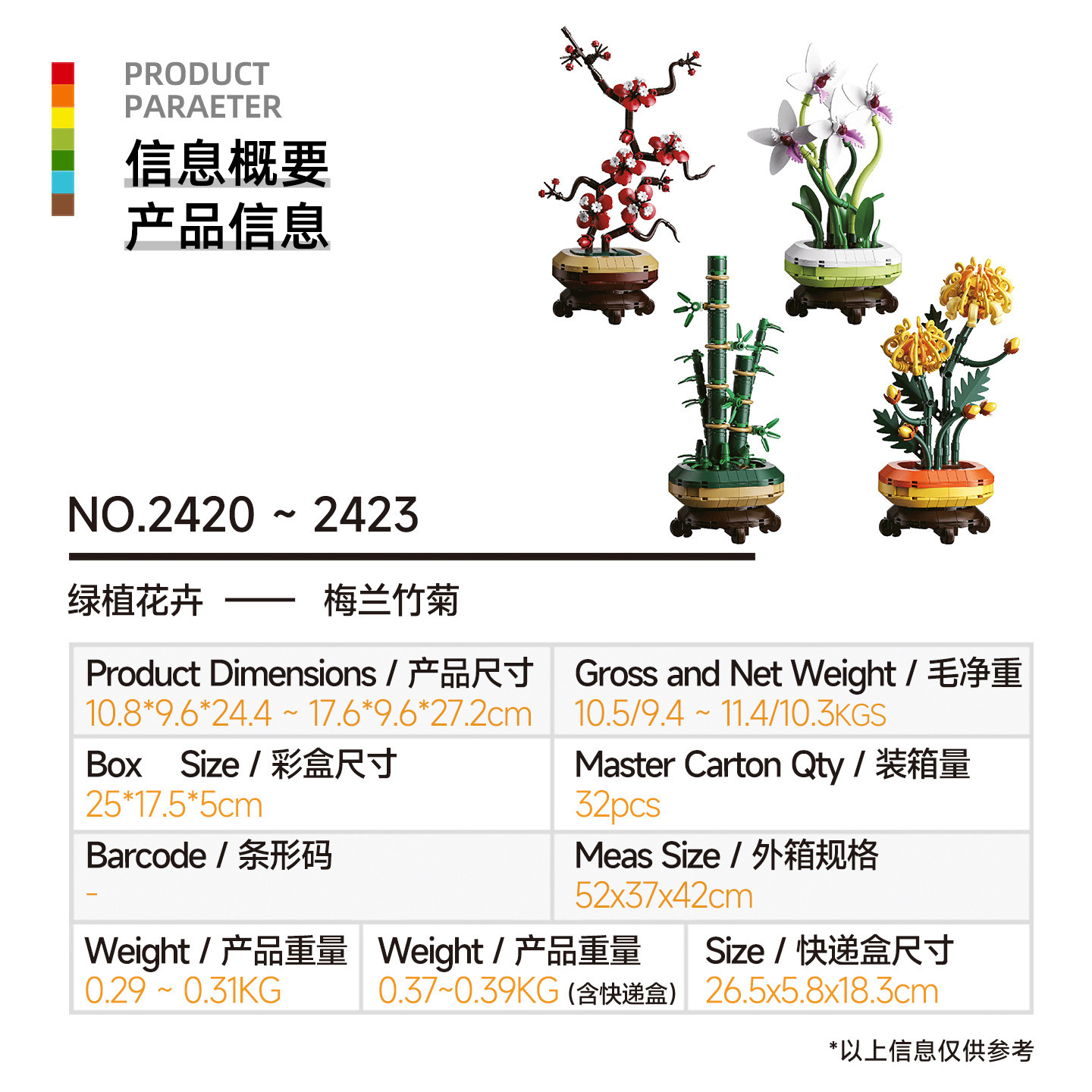 兼容高小颗粒积木花梅兰竹菊立体拼装兼容玩具中式盆栽家居