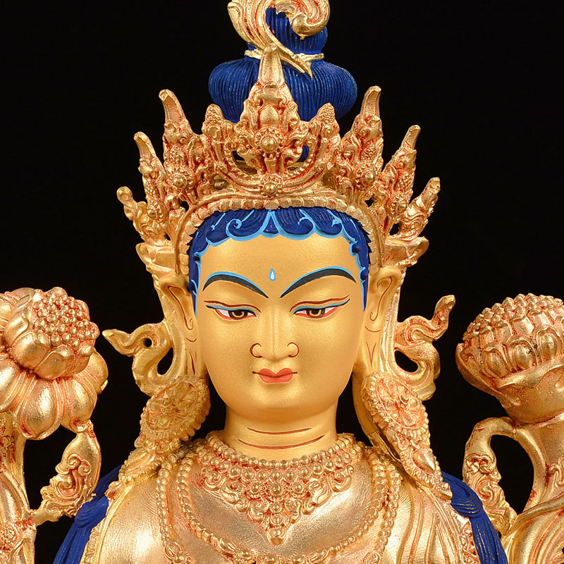 欧斯特 绿度母铜像 乔迁新居玄关用品全鎏金家居客厅中式摆件10寸