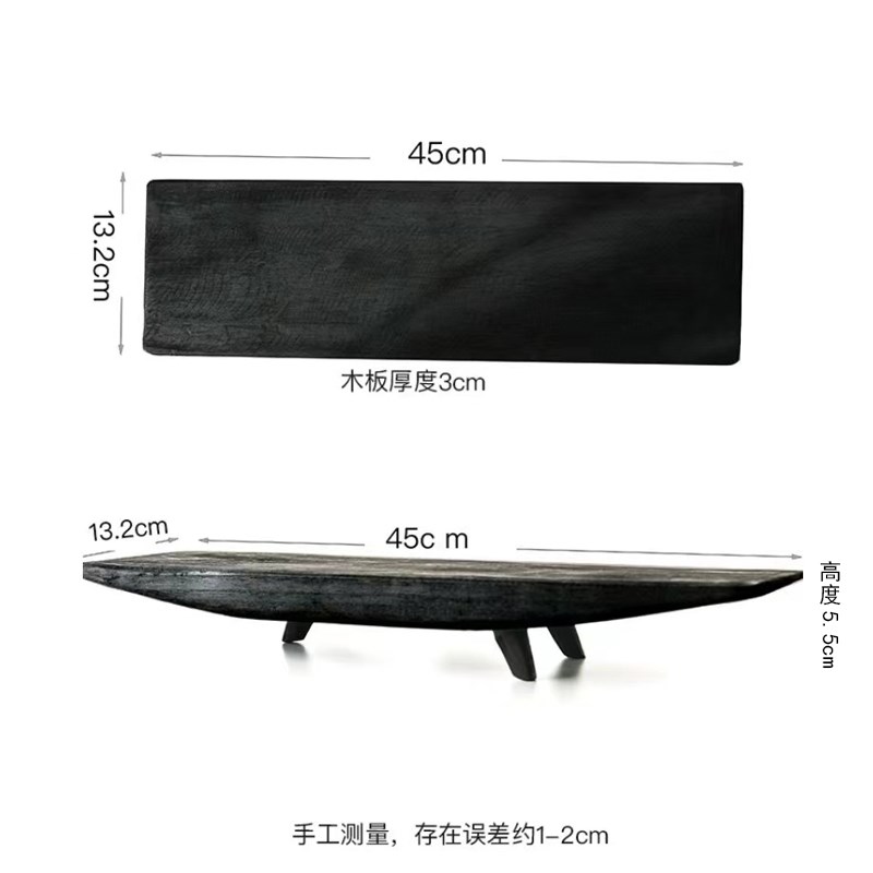 黑色实木长盘长方形高脚托盘客厅玄关电视柜茶几收纳盘装饰品摆件
