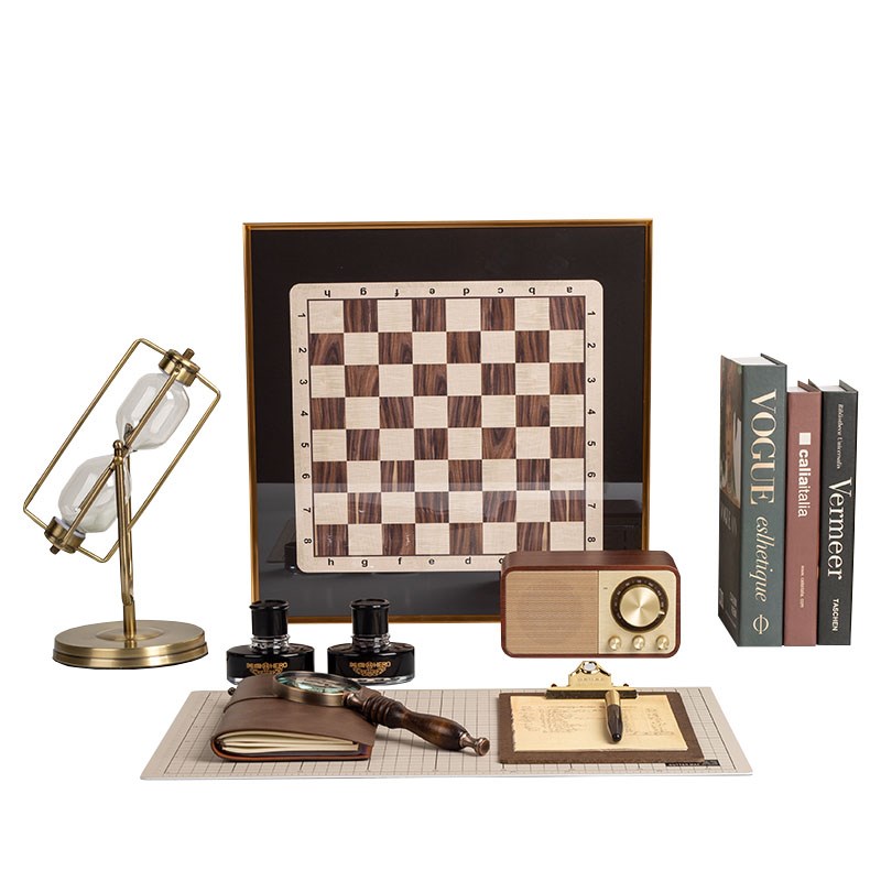 欧式样板间书房装饰摆件样板房书桌软装I复古笔记本手稿钢笔放大