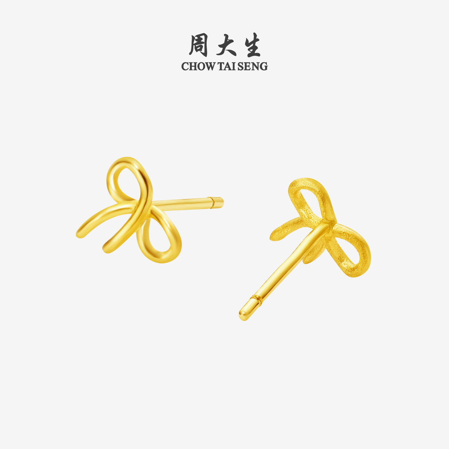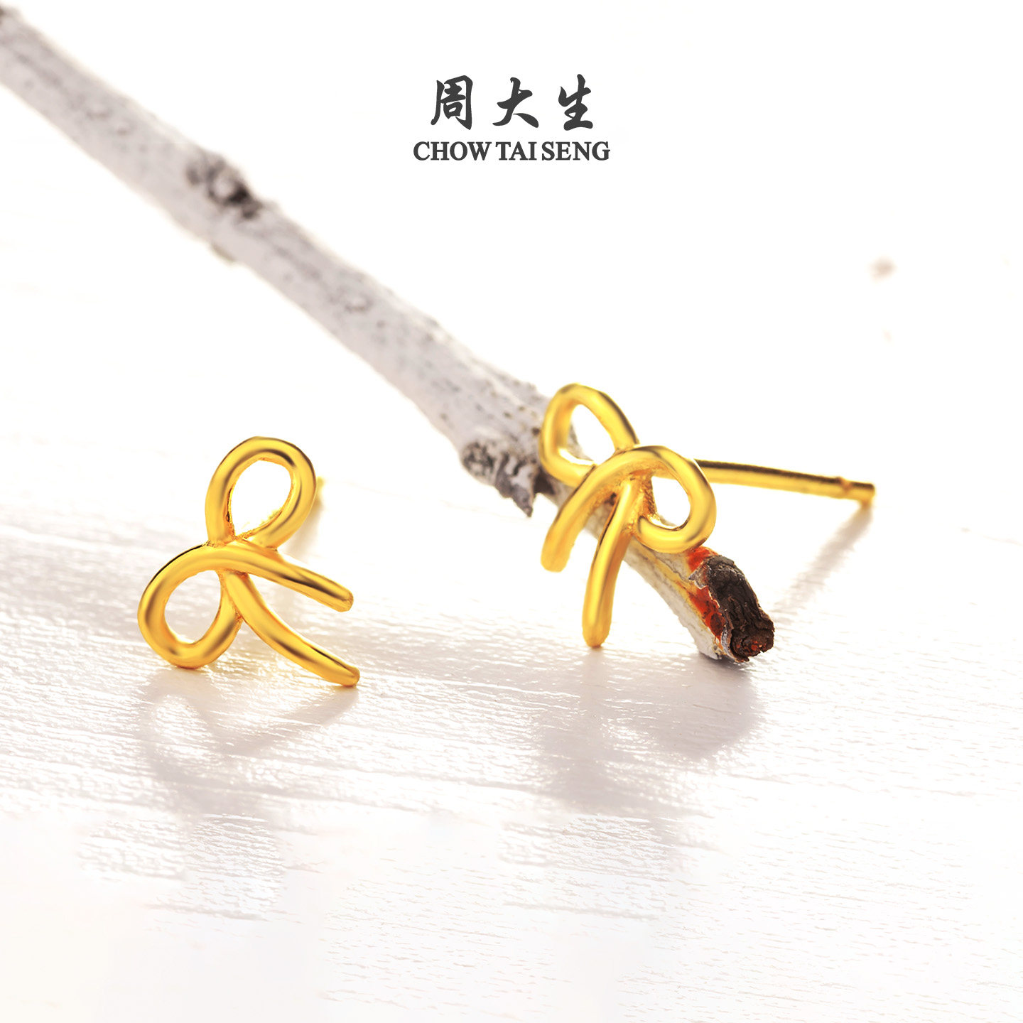 圣诞礼物周大生蝴蝶结黄金耳钉女计价足金在逃公主耳饰耳环送女友