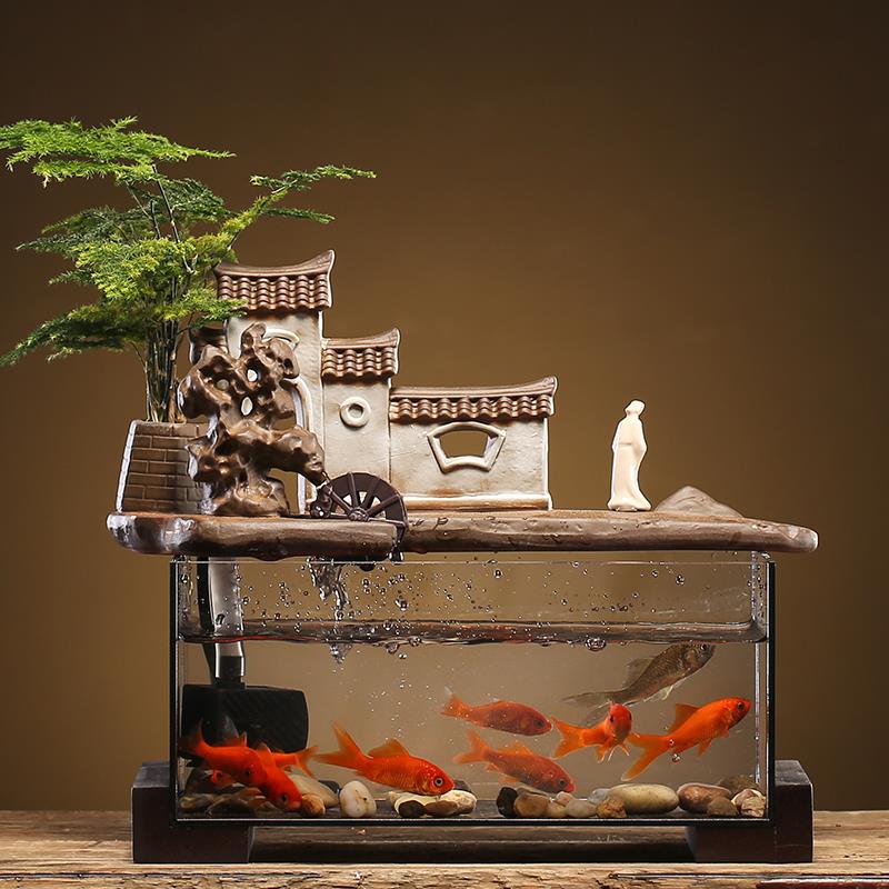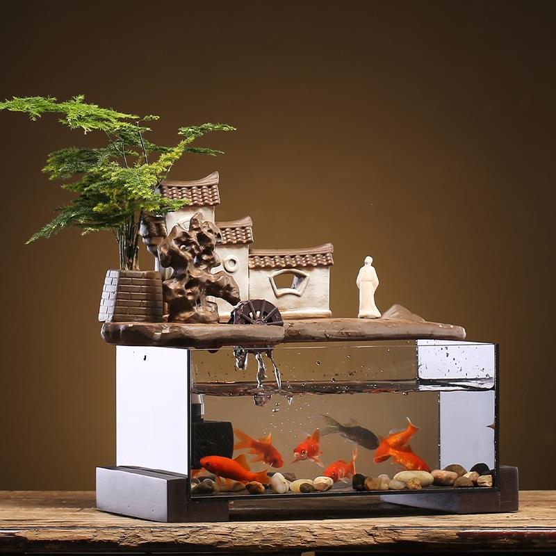 流水鱼缸摆件绿植景观造景水循环家居客厅玄关茶桌桌面装饰品礼品